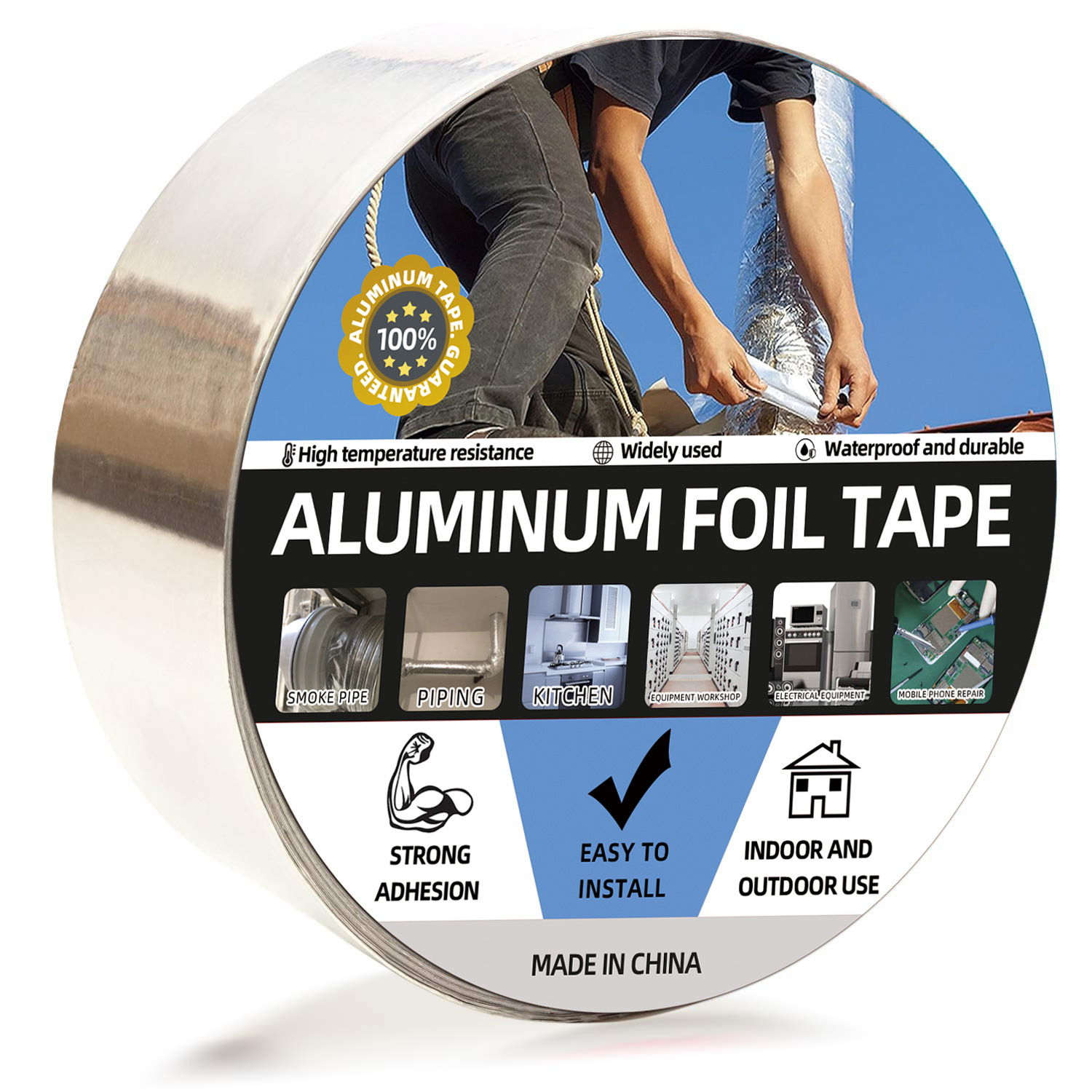跨境铝箔胶带高粘抗老化锡纸胶带耐高温厨房管道防霉铝箔自粘贴