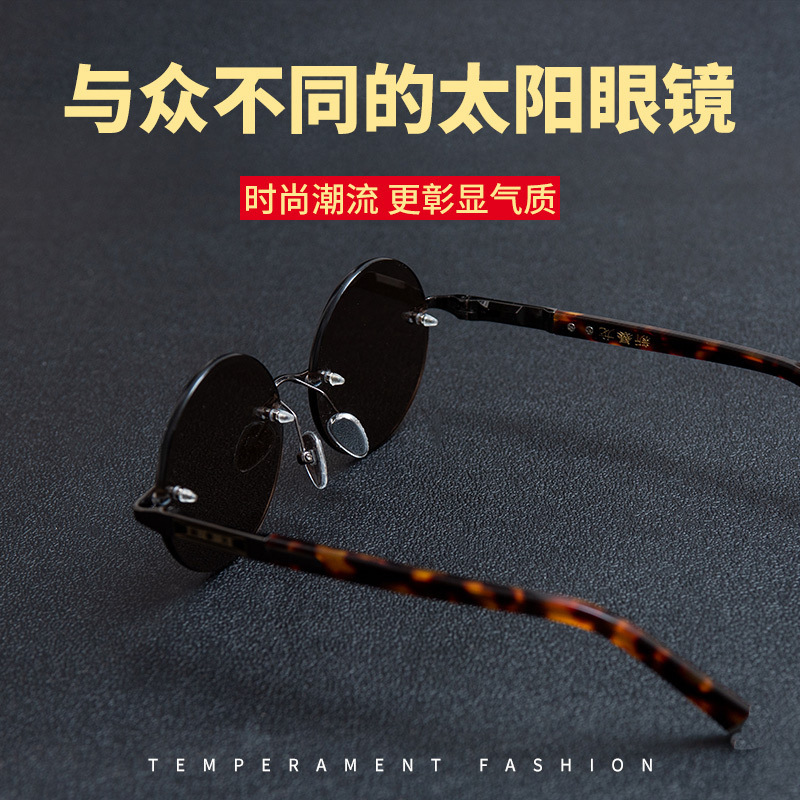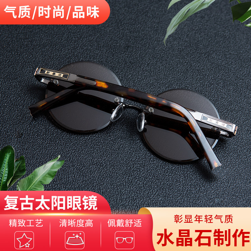 水晶眼镜石头镜复古无框圆形大框大脸太阳镜男墨镜清凉