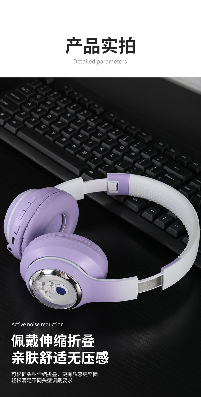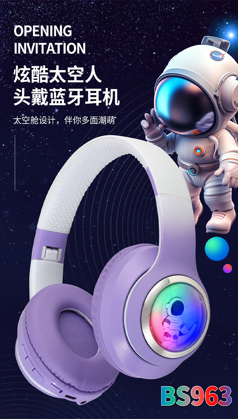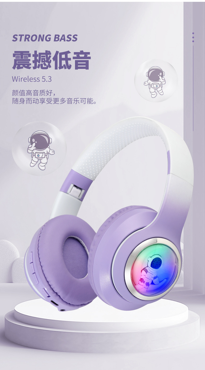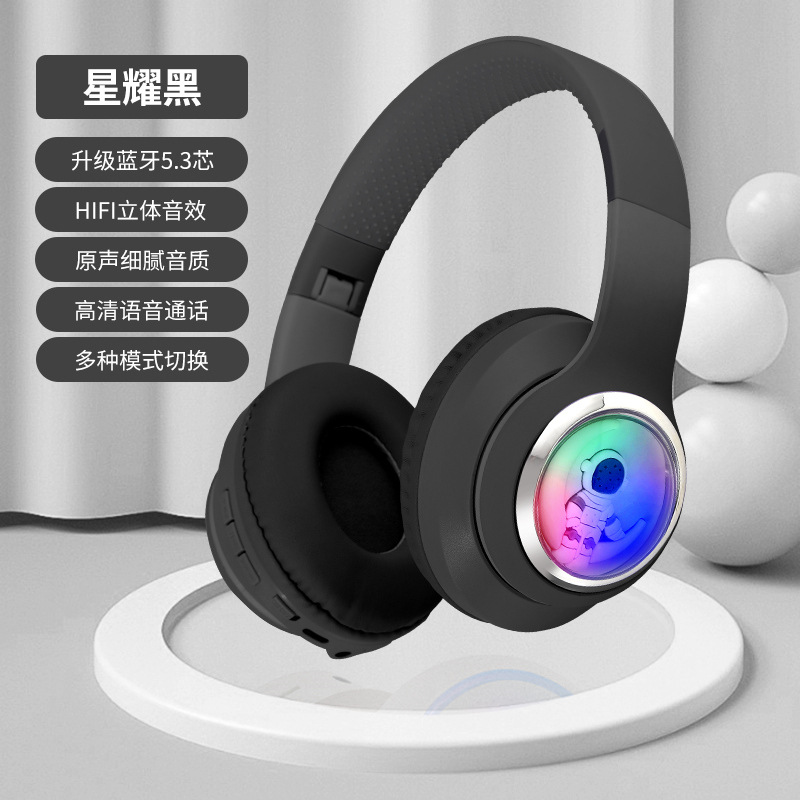 新款太空人BS963无线蓝牙5.3头戴式插卡耳机折叠运动发光蓝牙耳麦