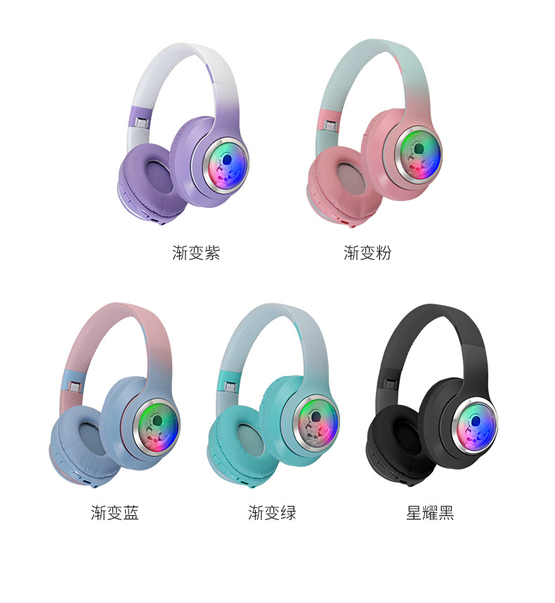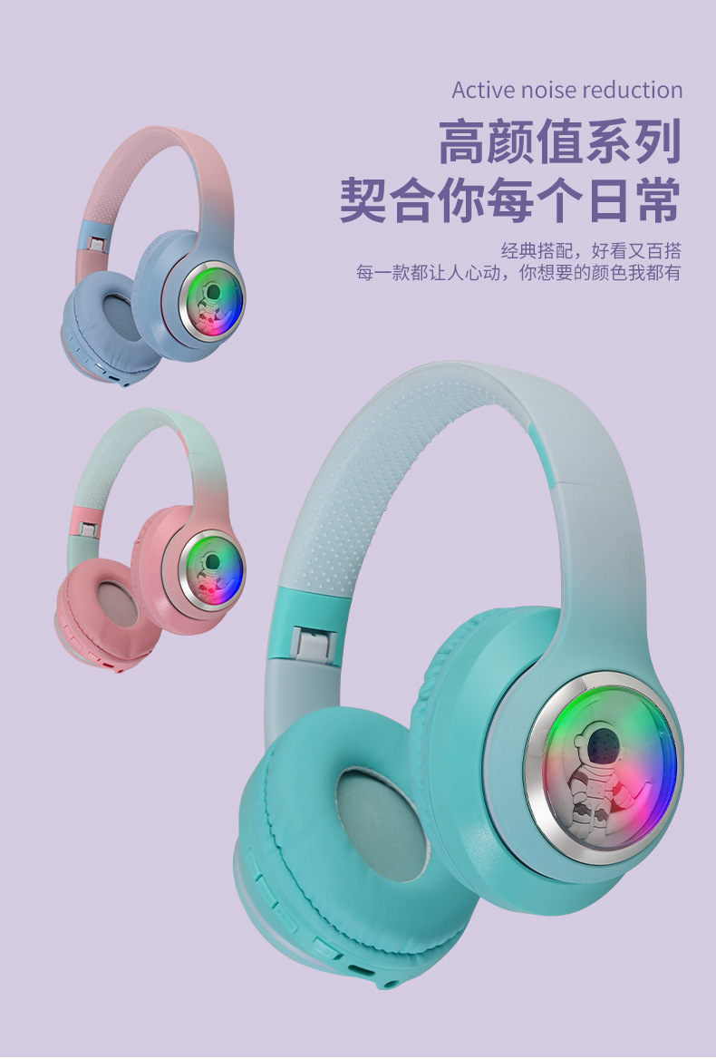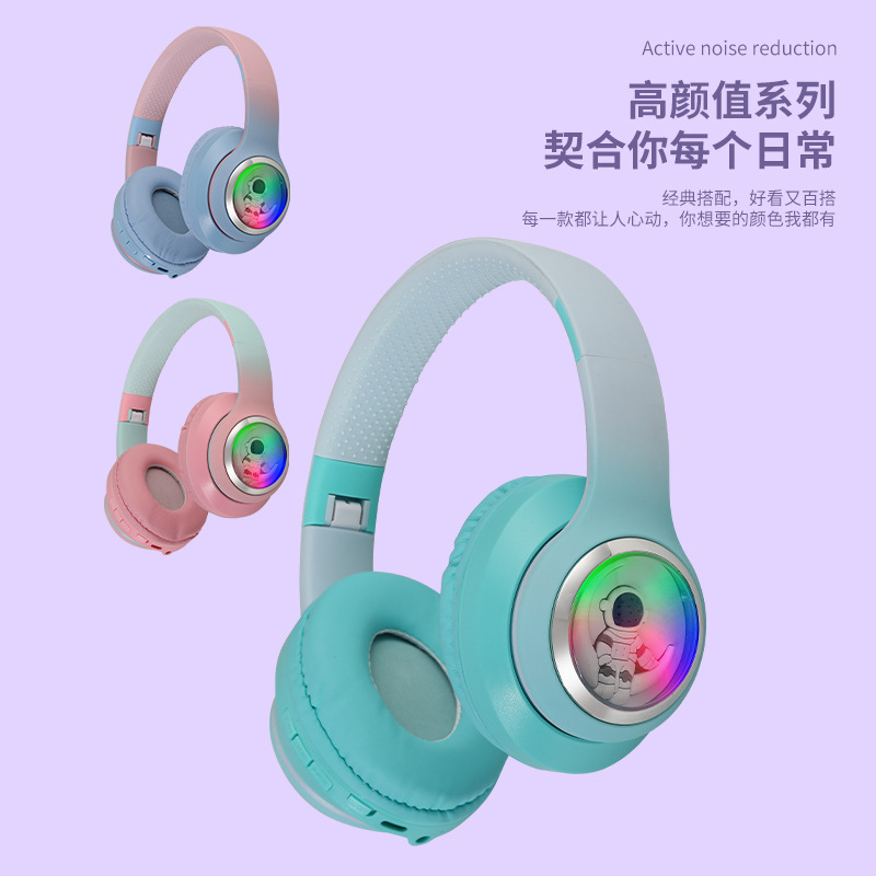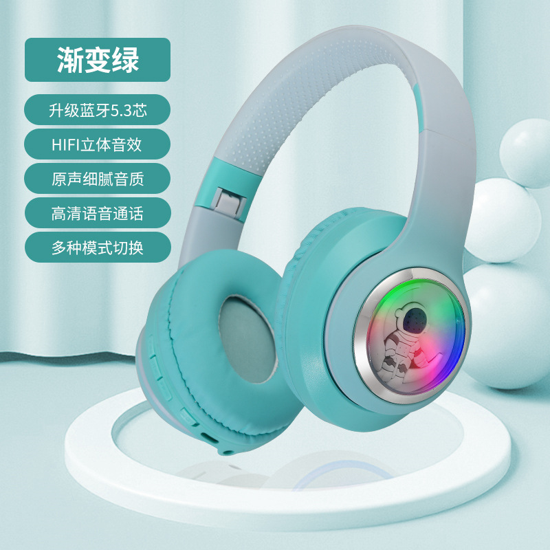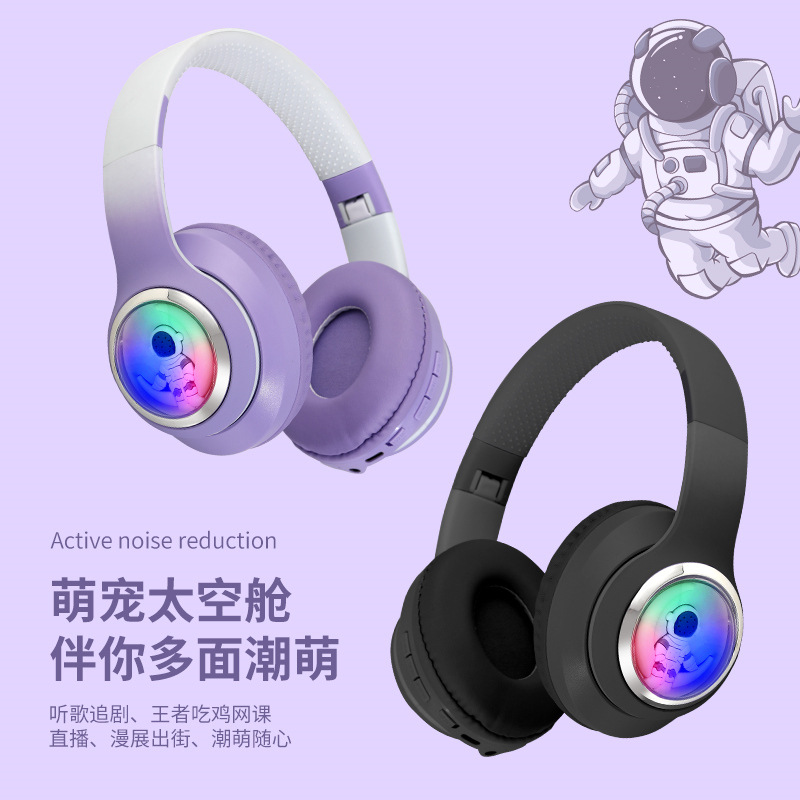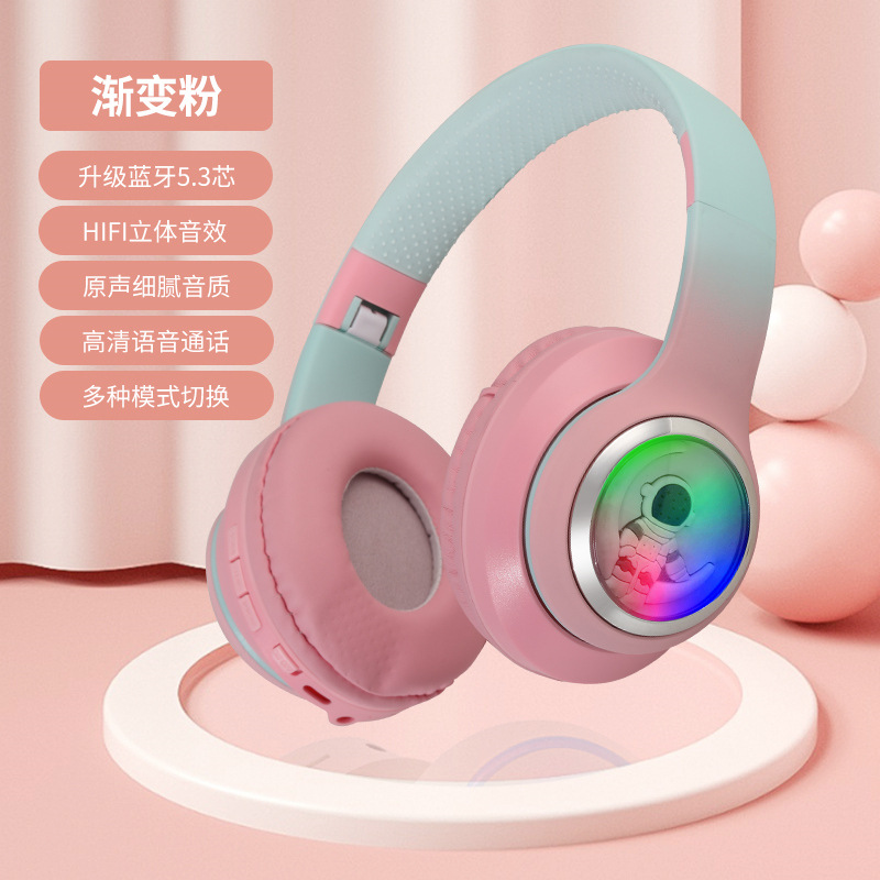 新款太空人BS963无线蓝牙5.3头戴式插卡耳机折叠运动发光蓝牙耳麦