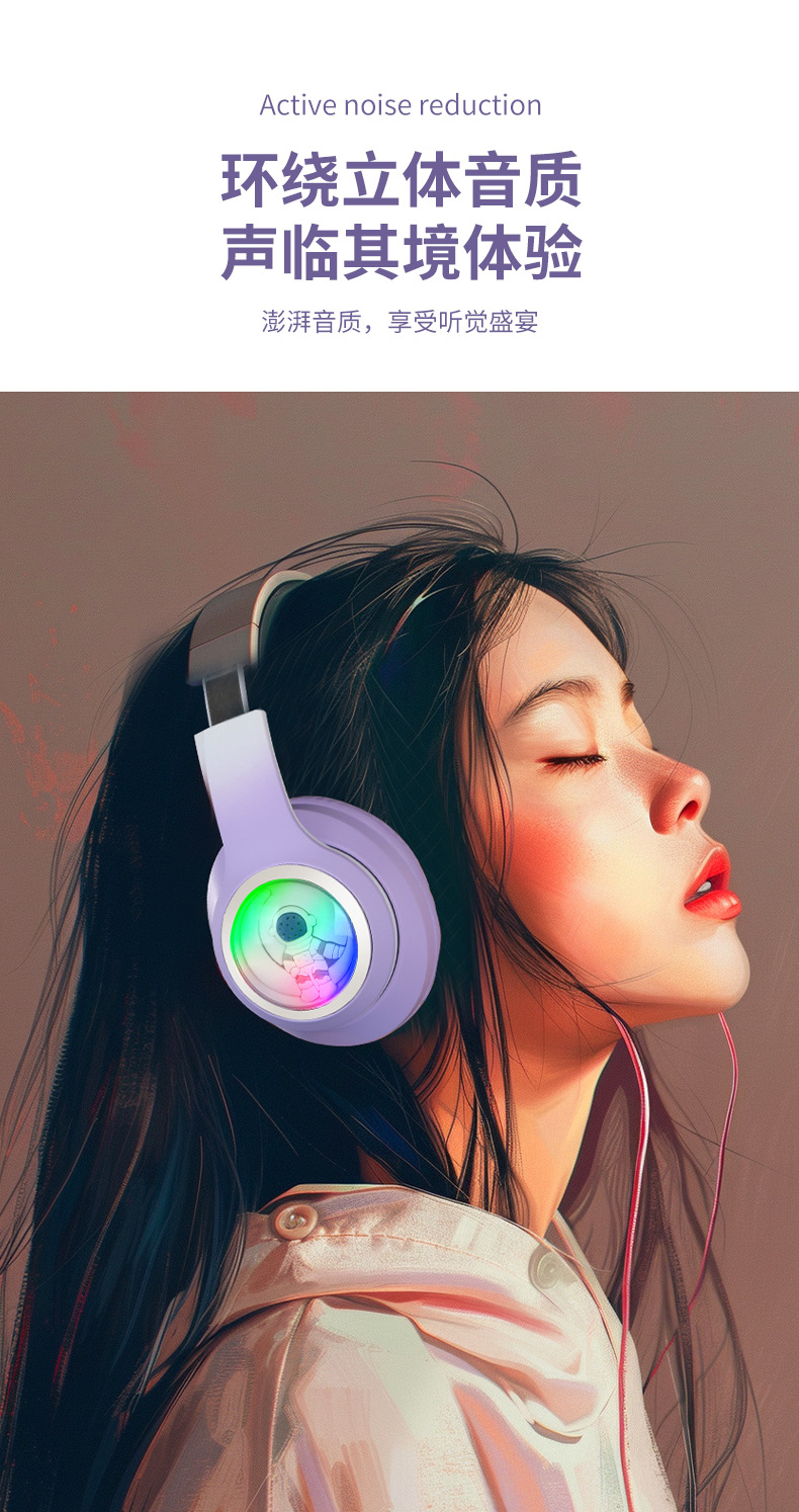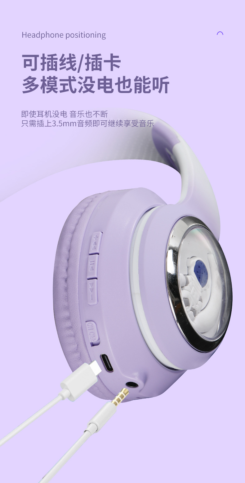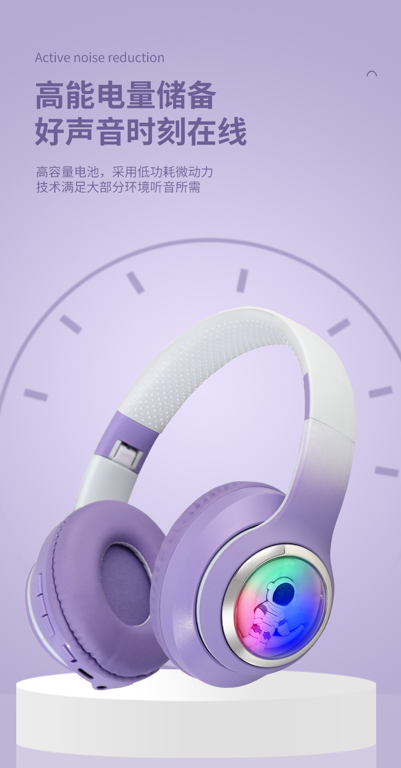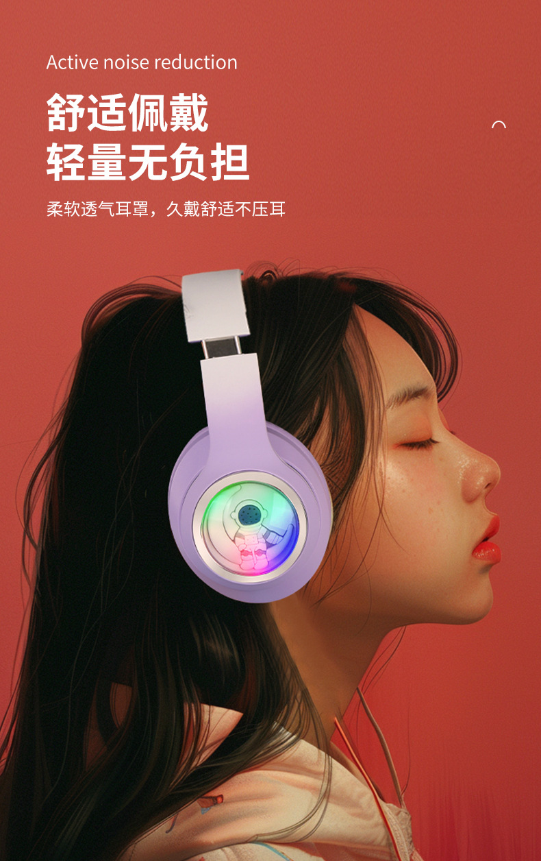 新款太空人BS963无线蓝牙5.3头戴式插卡耳机折叠运动发光蓝牙耳麦