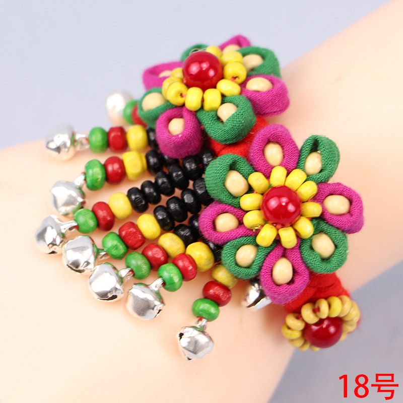 批发民族风手工布艺手链舞蹈女复古护腕手饰品简约个性铃铛旅游