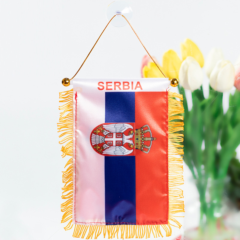 亚马逊球迷旗帜8*12cm热转印色丁流苏双面迷你小锦旗国家吸盘挂件