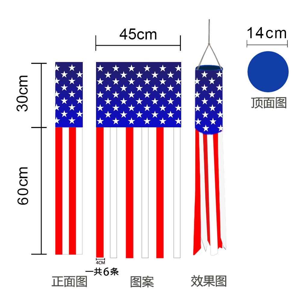 美国独立日风筒旗 劳动节国庆装饰风向袋 美国国旗风向标风筝旗子