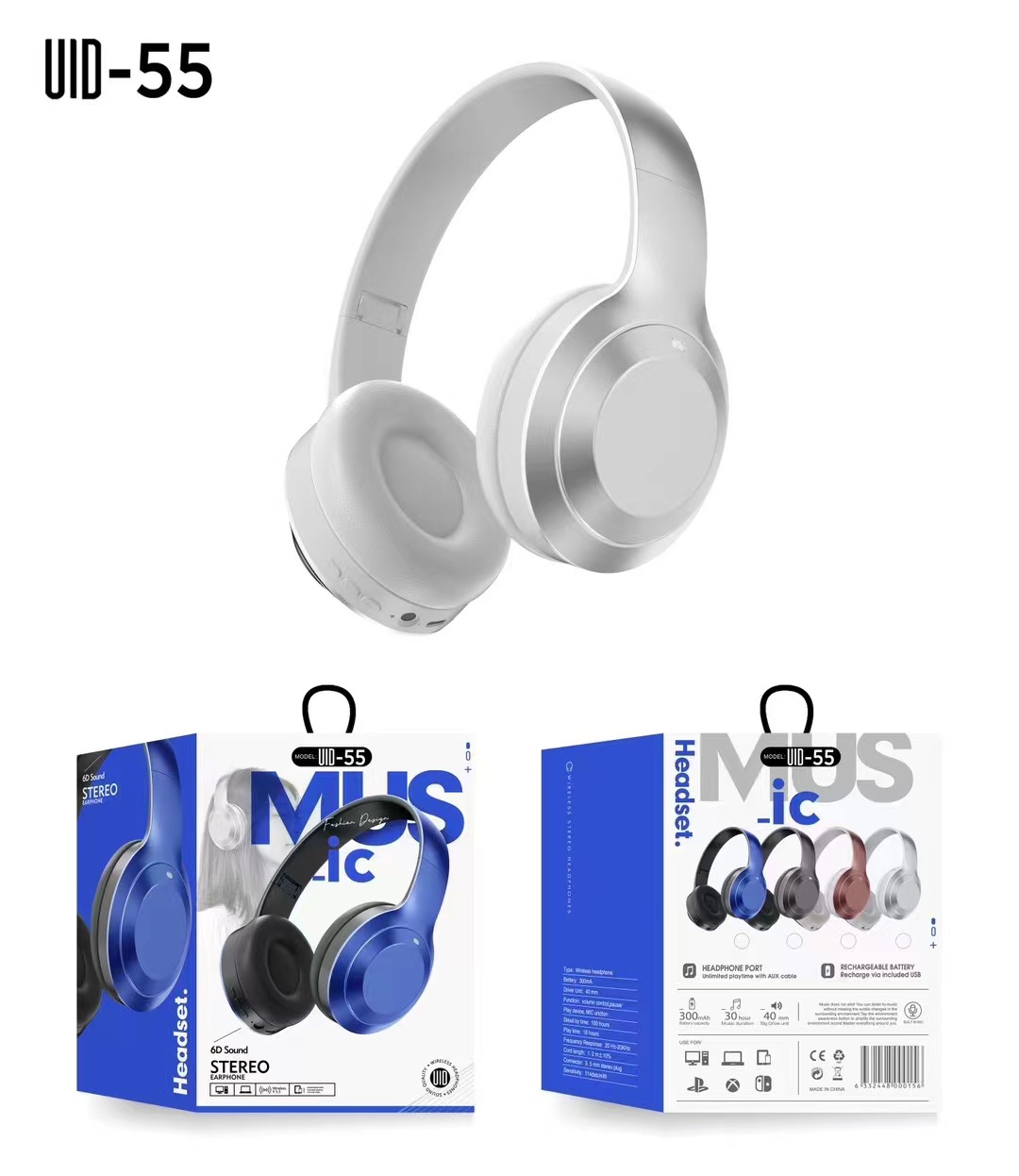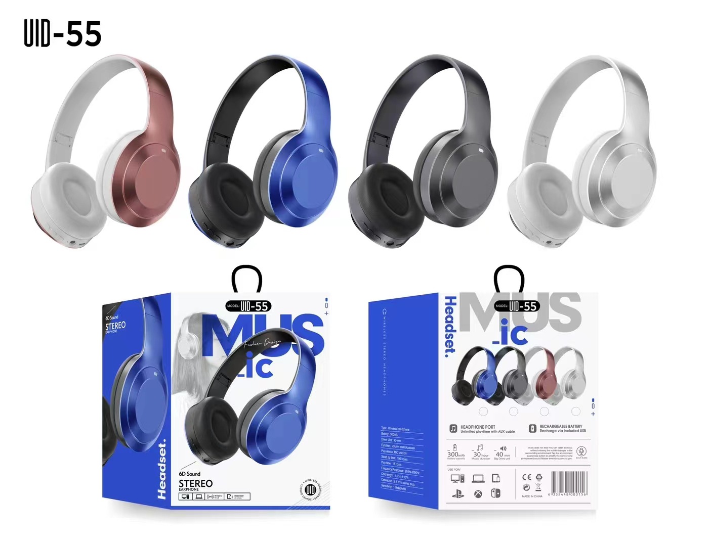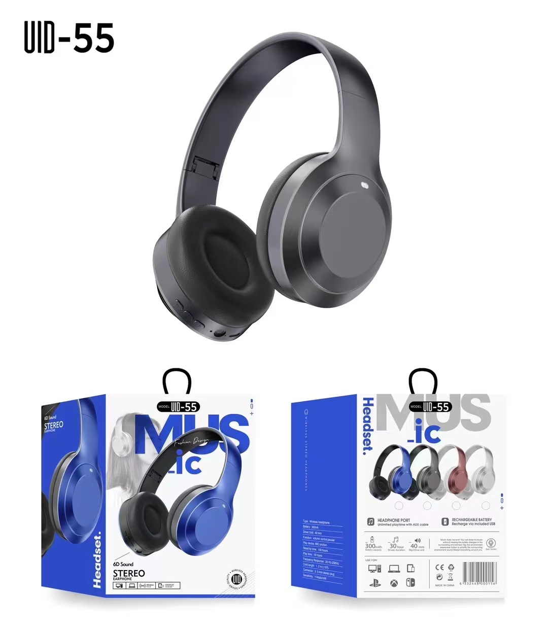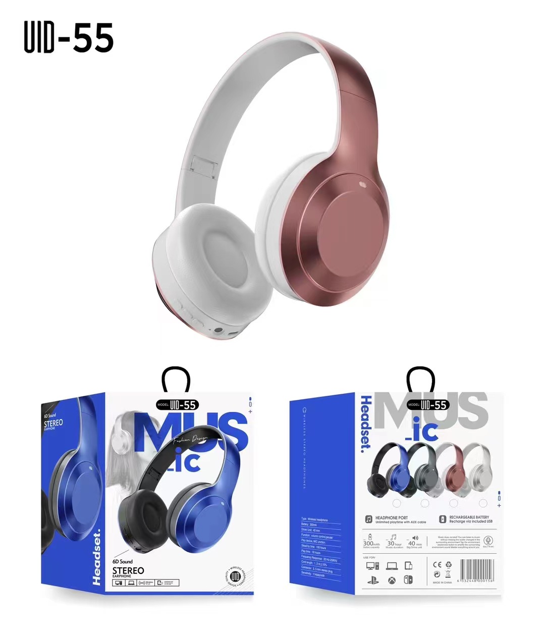 UID-55头戴式无线蓝牙电竞游戏耳机折叠可伸缩收音耳机5.0