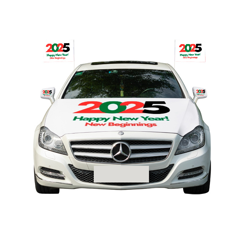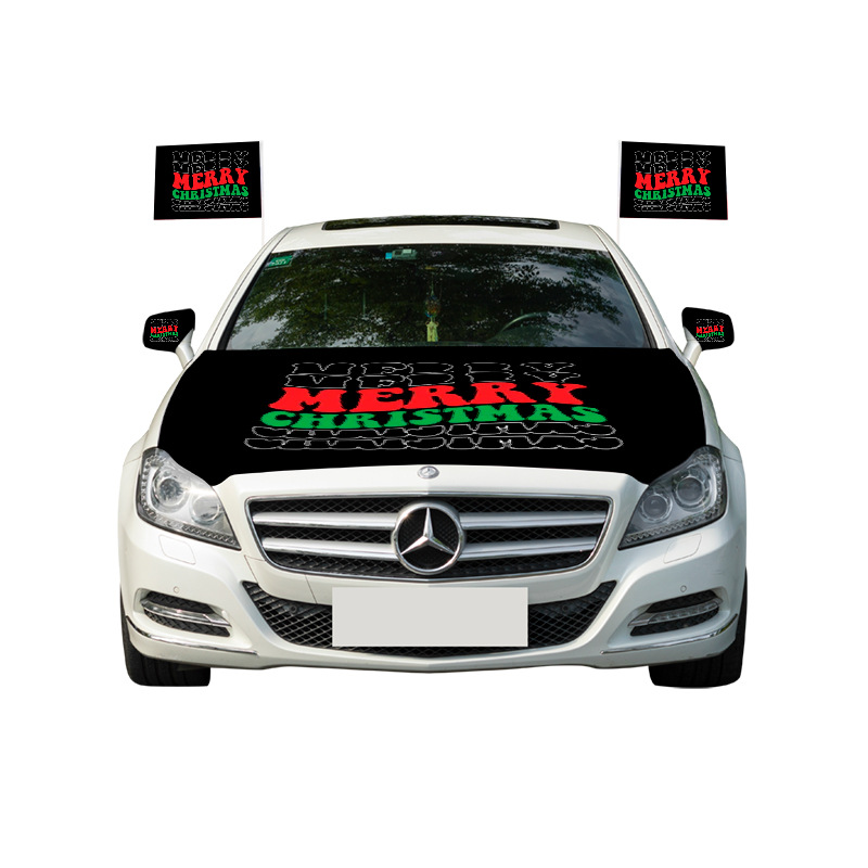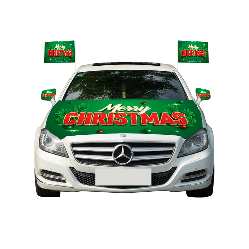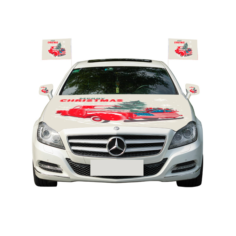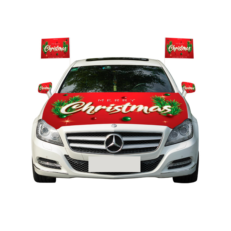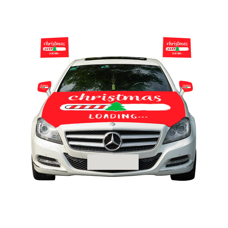 亚马逊美国圣诞节装饰新年车旗套装汽车反光镜套车镜套引擎盖车套