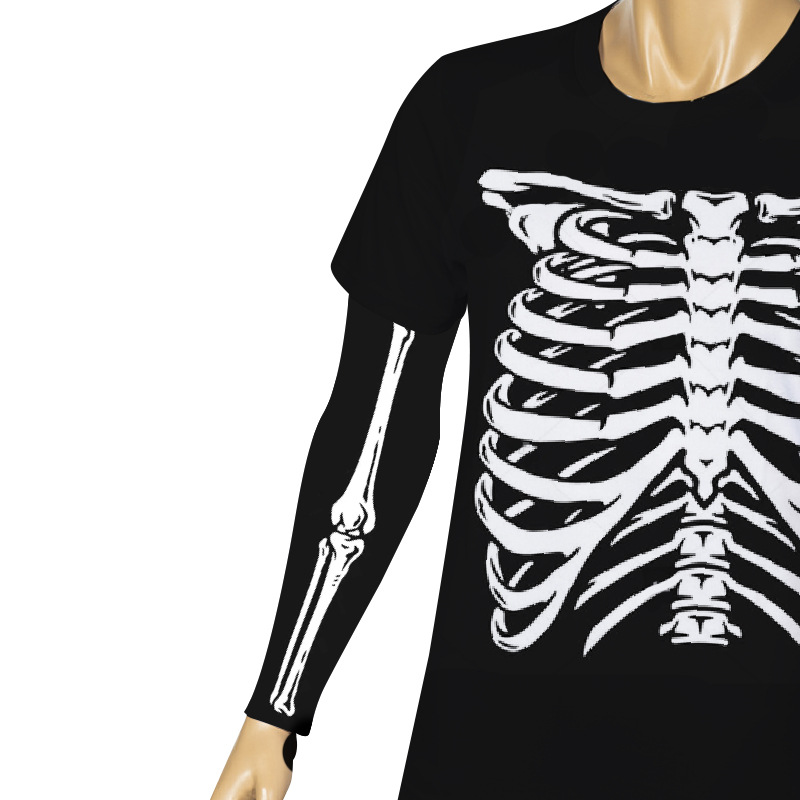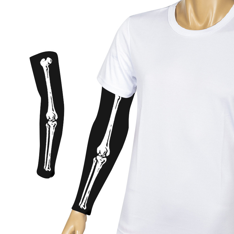 跨境万圣节骨架手臂套牛奶丝印花防晒手袖亡灵节t恤服装道具定 制