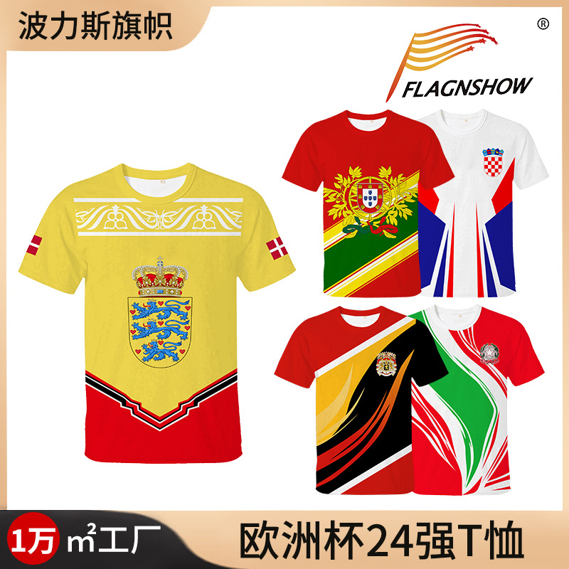 跨境2024欧洲杯24强球迷t恤网眼布圆领T恤足球队服世界杯广告衫