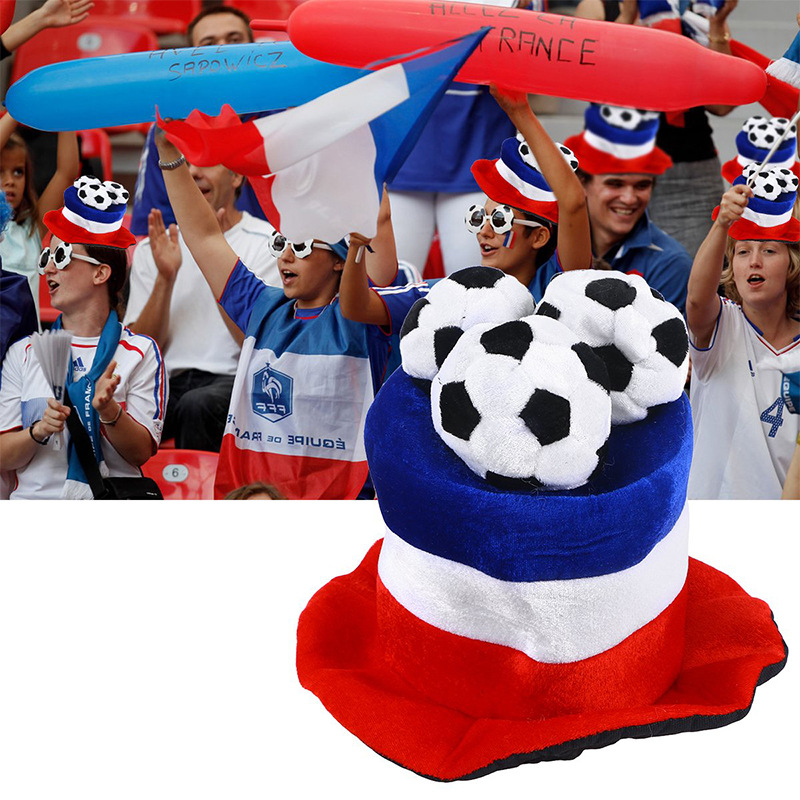 跨境2024欧洲杯球迷产品天鹅绒国旗帽子三个足球配饰狂欢助威道具