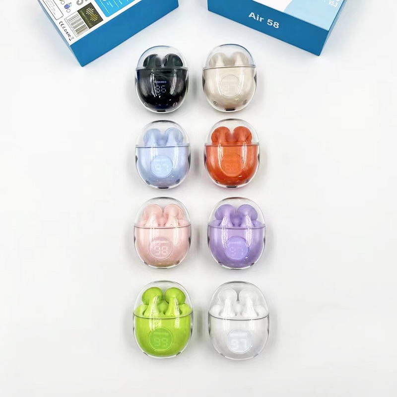Air 58跨境爆款透明仓壳入耳式高音质立体声大音量无线蓝牙耳机
