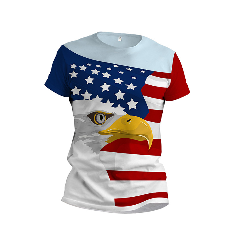 跨境2024新款美国独立日t恤涤纶印圆领独立日服装派对道具定 制