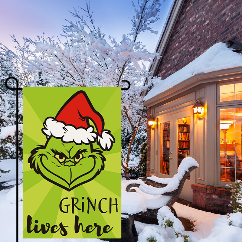 2024新款格林奇圣诞节花园旗户外装饰旗帜30X45CM涤纶双面定 做