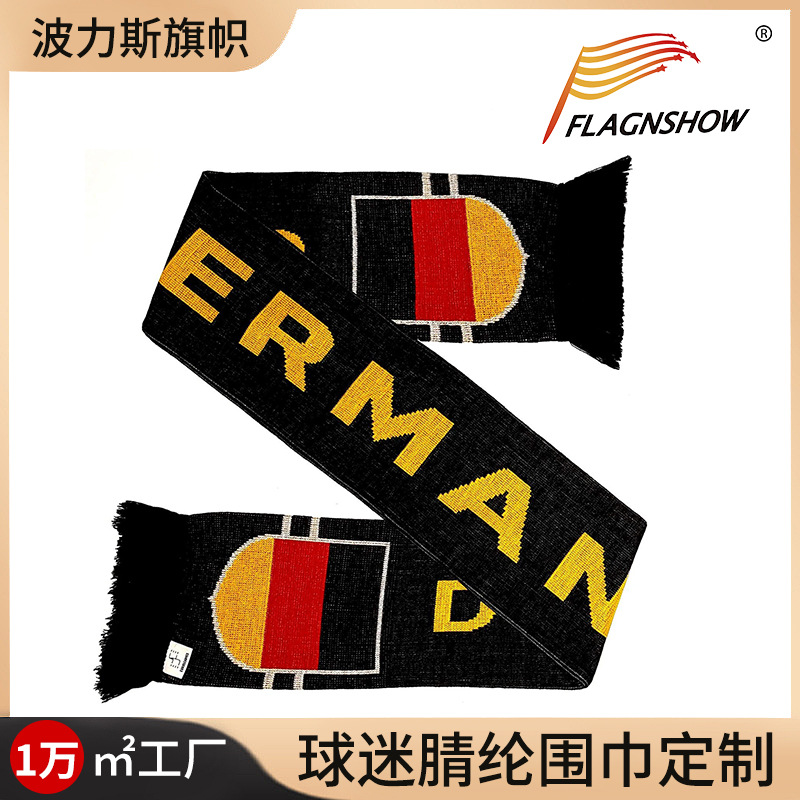 跨境腈纶围巾欧洲杯世界杯球迷用品带流苏球迷围巾圆机织造定 制