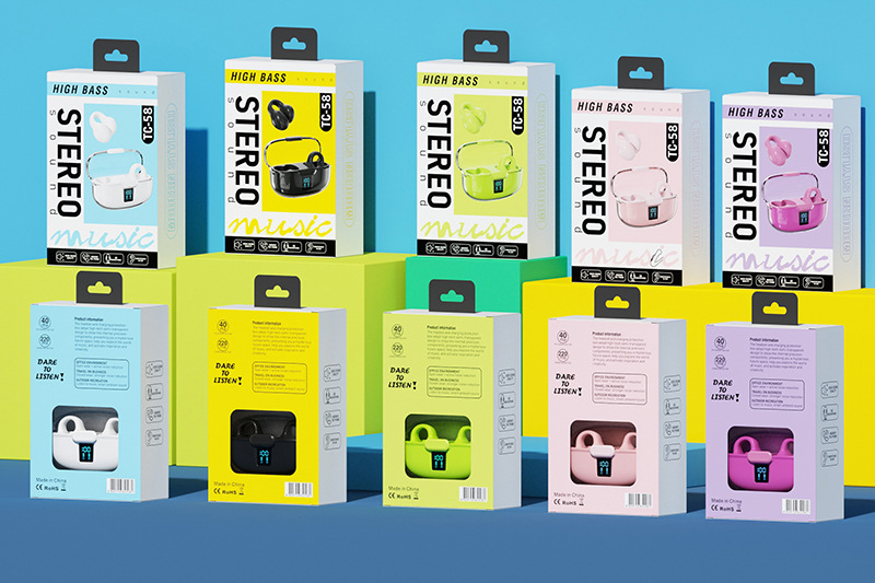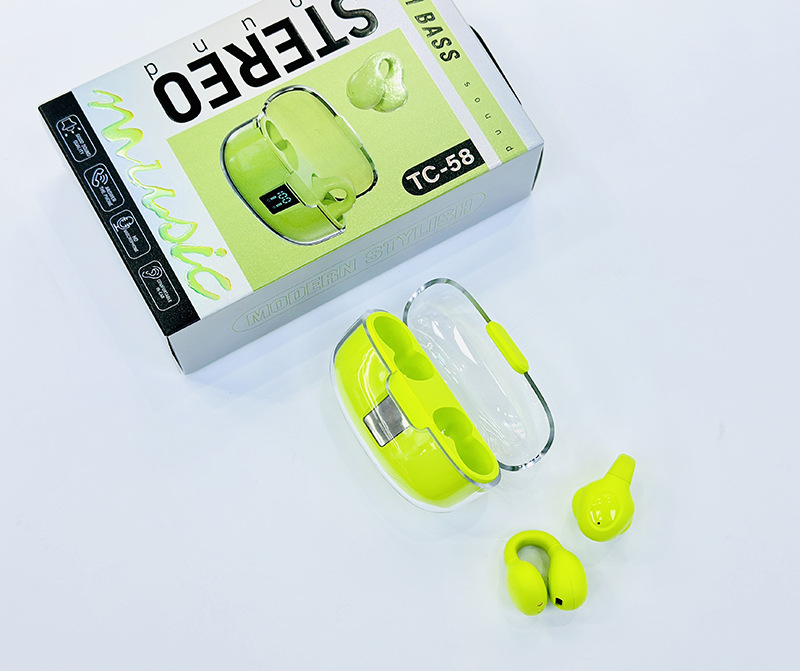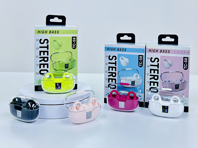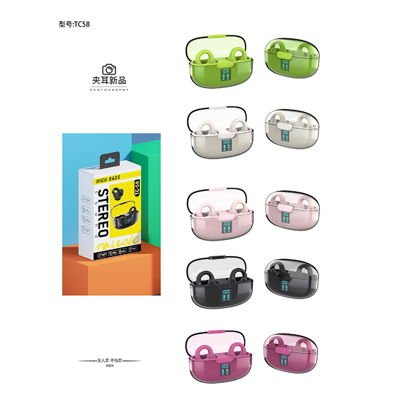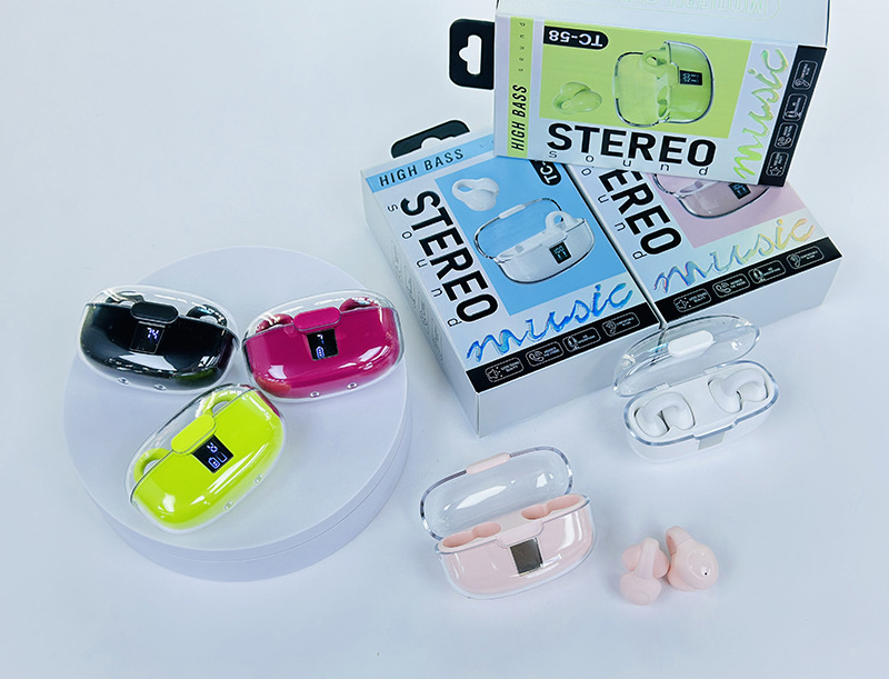TC-58新款保护套夹耳高音质立体声数显座舱主动降噪无线蓝牙耳机