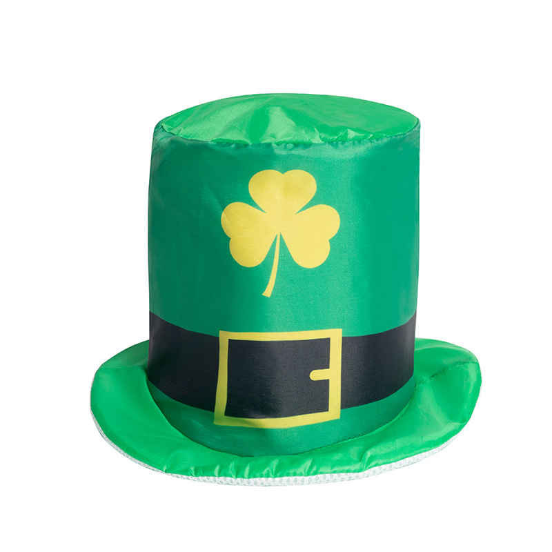 亚马逊新款圣帕特里克节帽子涤纶数码印花爱尔兰节三叶草帽子