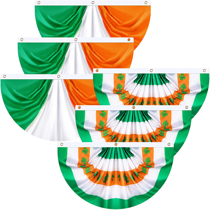 爱尔兰国旗 涤纶45*90cm庭院护栏装饰百褶圣帕特里克节扇形旗批发