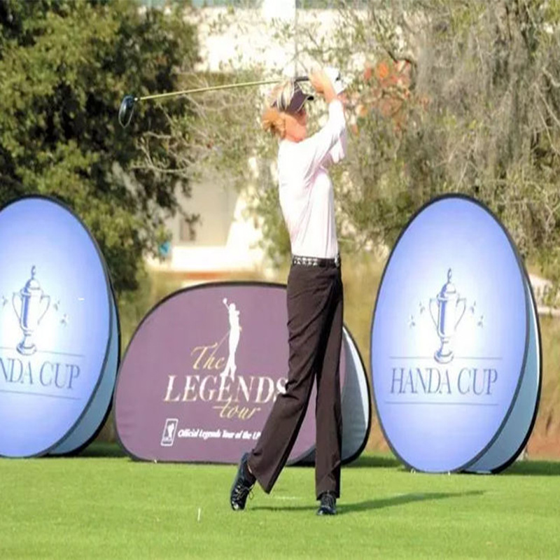 跨境椭圆形广告a屏展架户外双面可折叠展示架钢条弹力布数码印花