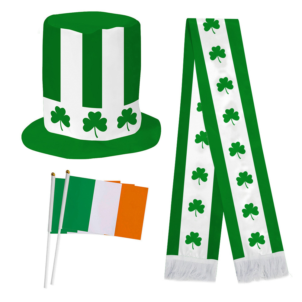 亚马逊2024新款圣帕特里克节帽子涤纶数码印花爱尔兰节三叶草帽子