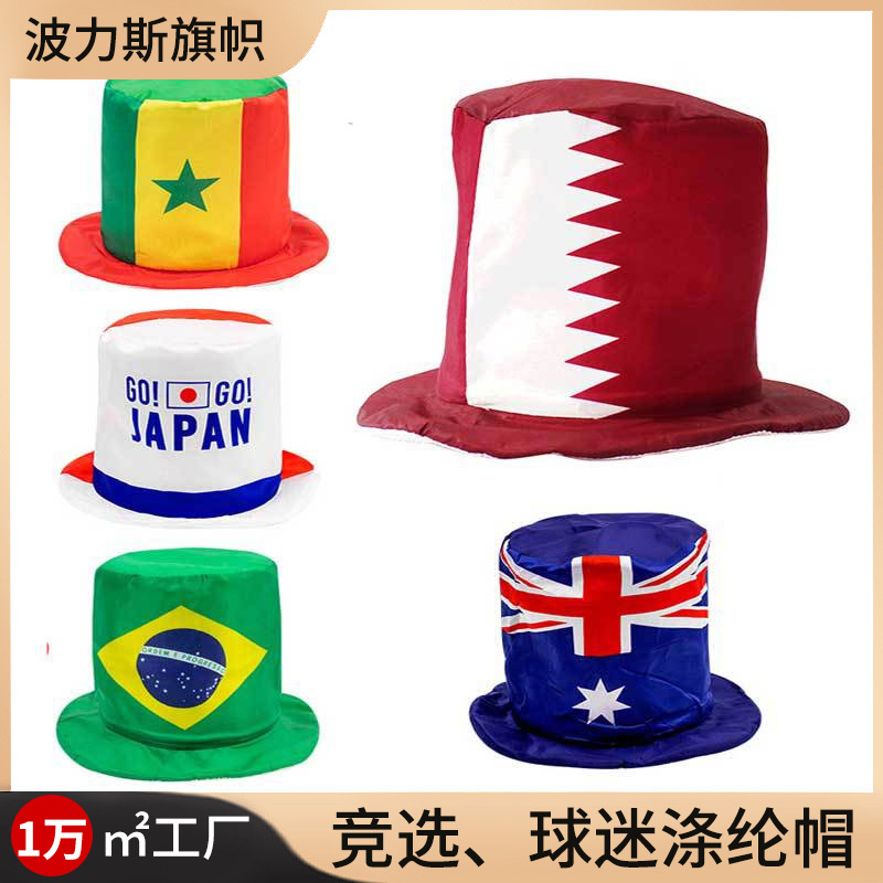 亚马逊 世界杯球迷用品涤纶高帽欧洲杯助威道具国旗竞选帽子厂家
