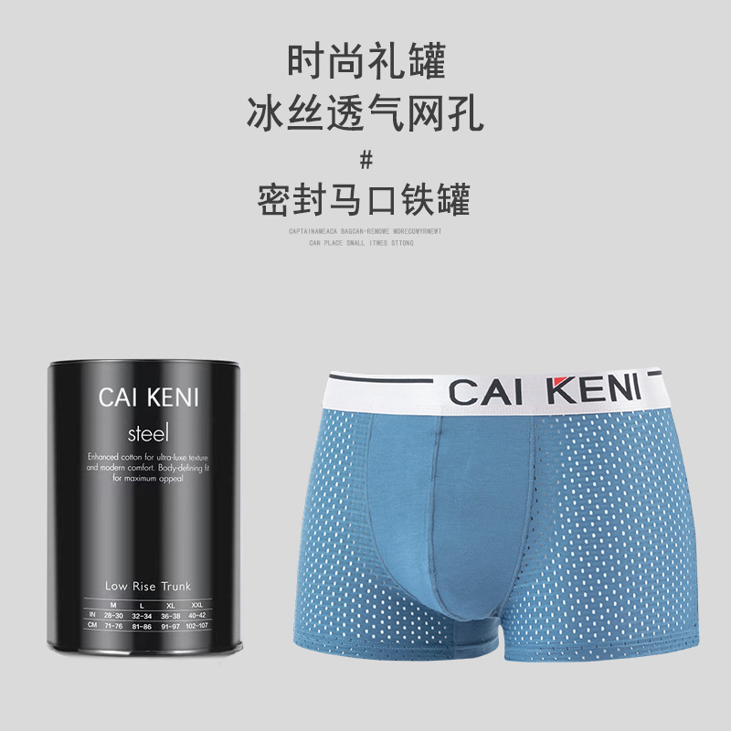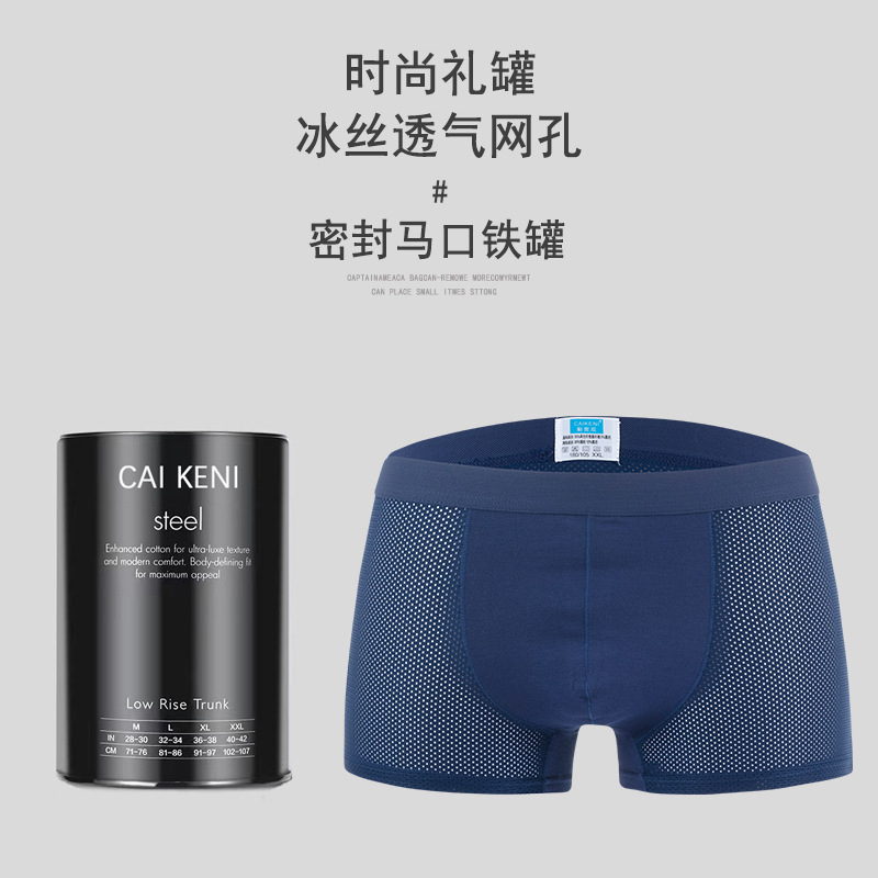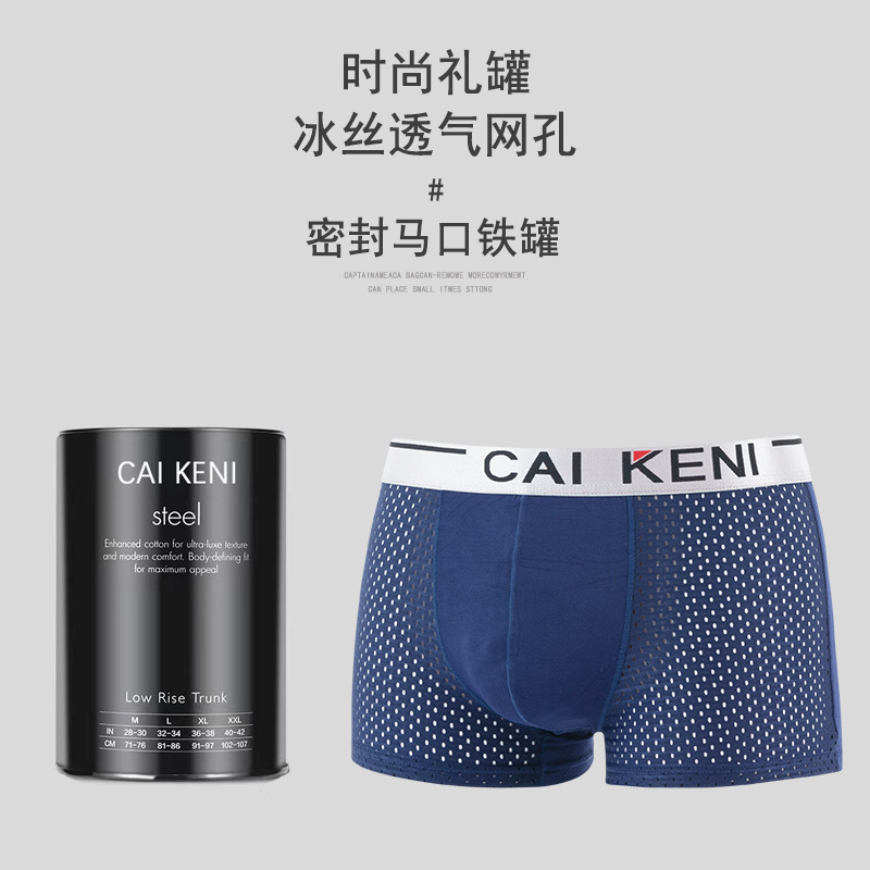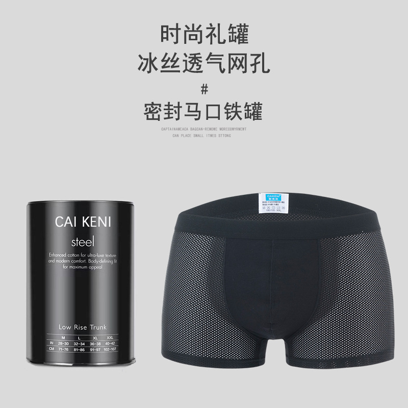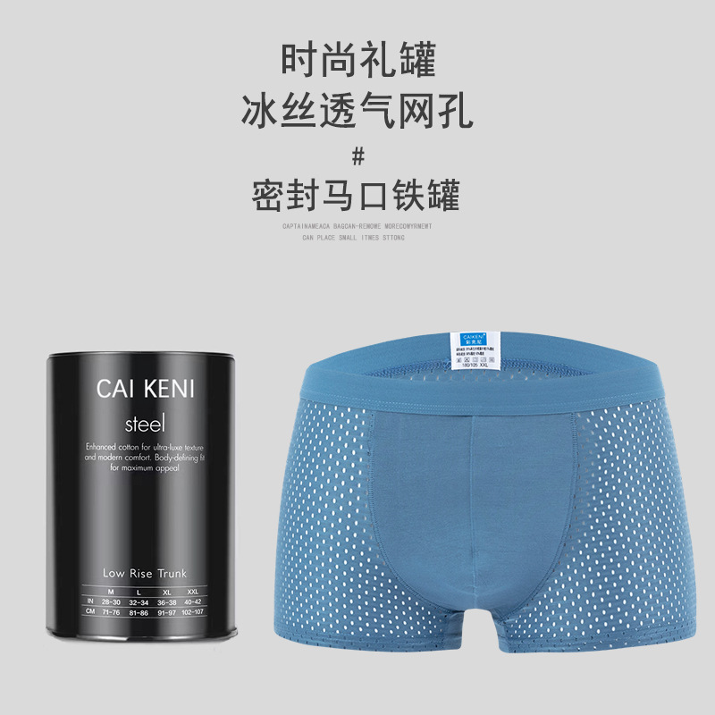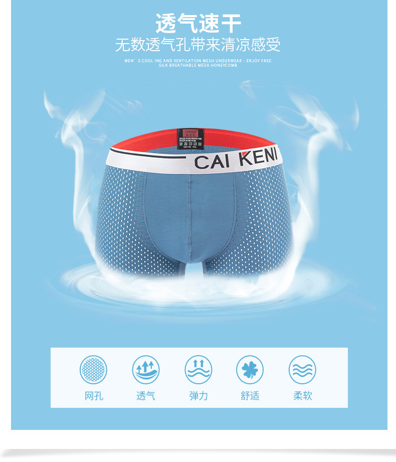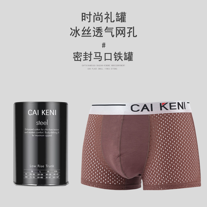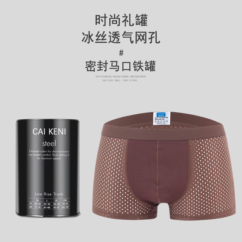 男士内裤男冰丝网孔夏季超薄款莫代尔性感平角裤无痕网眼四角短裤