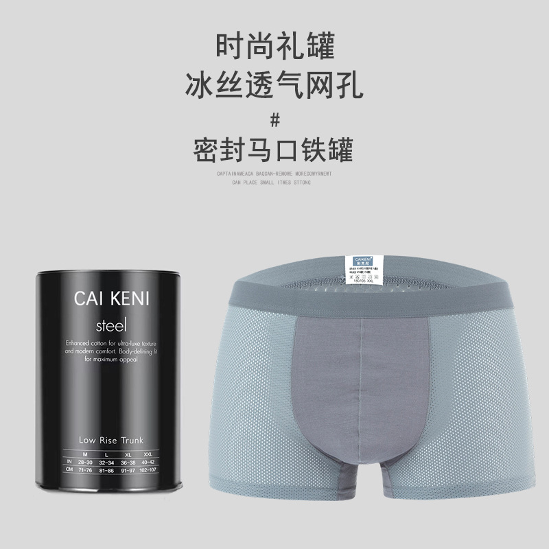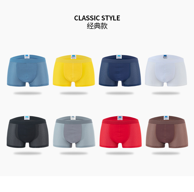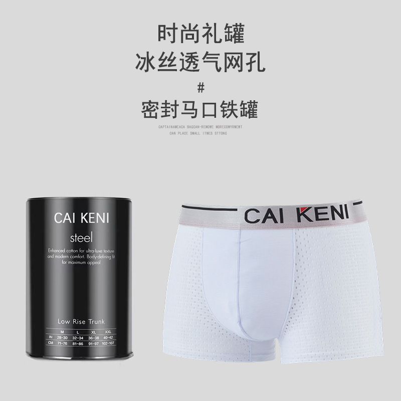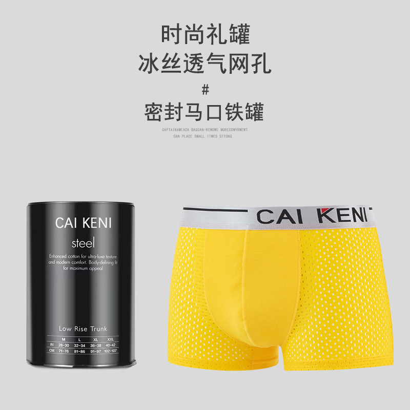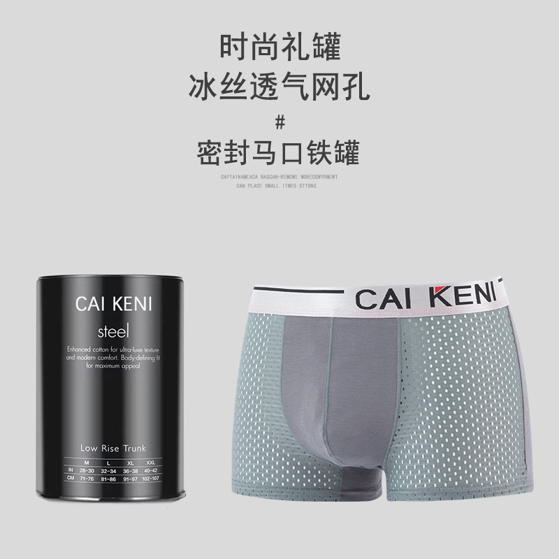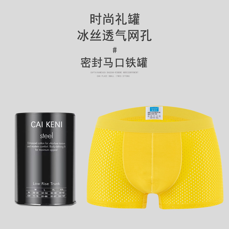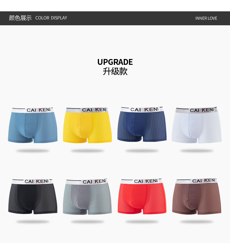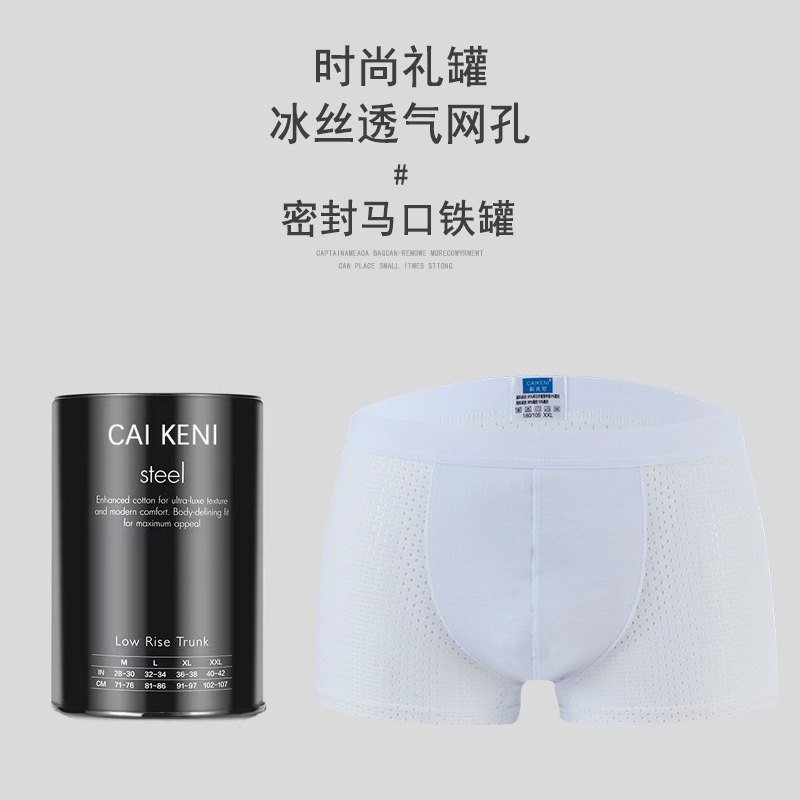 男士内裤男冰丝网孔夏季超薄款莫代尔性感平角裤无痕网眼四角短裤