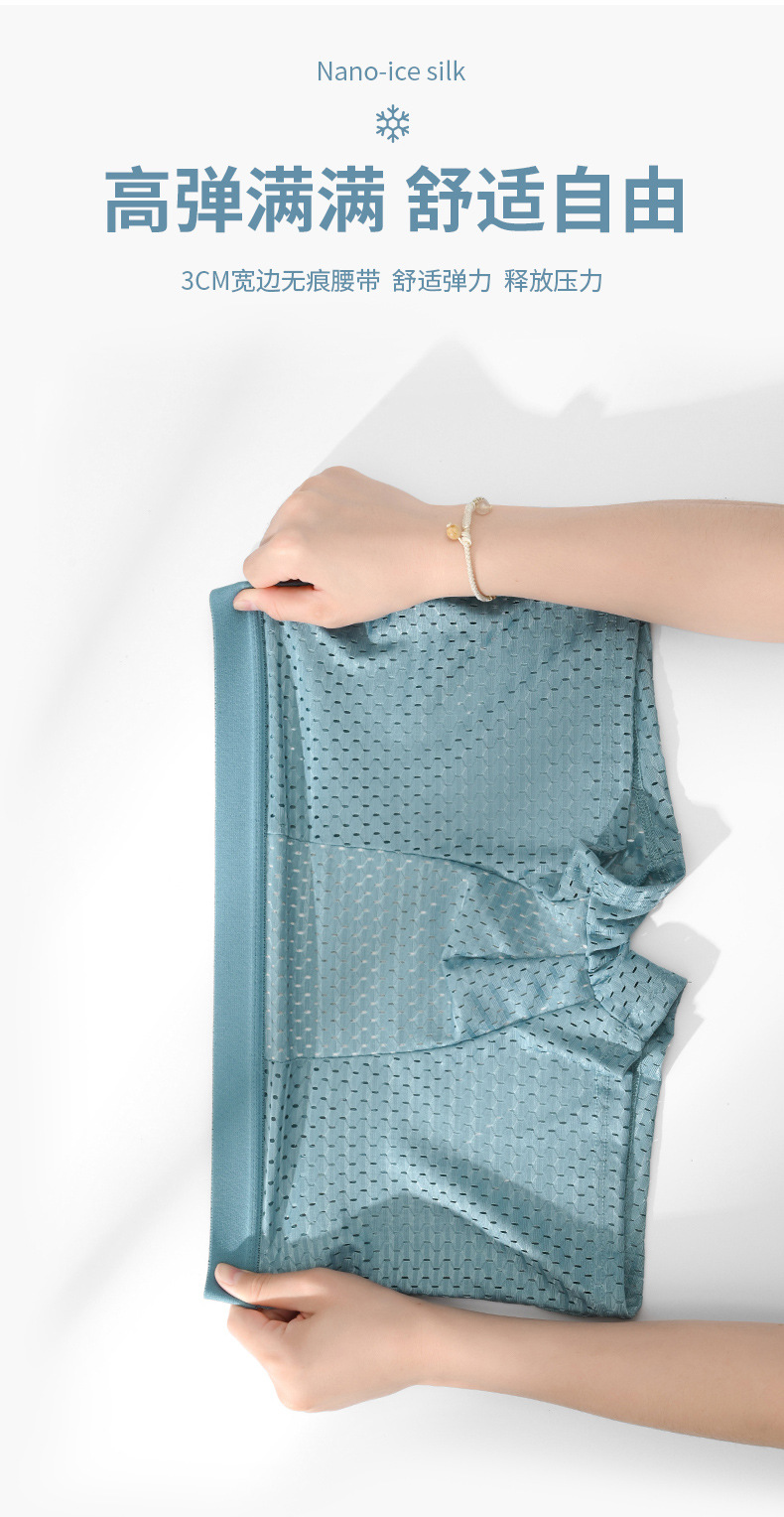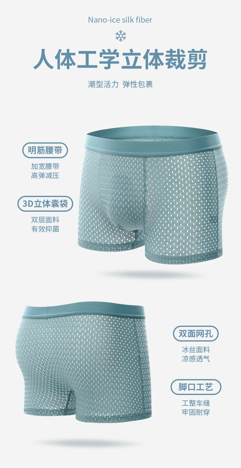 冰丝网眼男士内裤男生夏平角裤全网大码薄款青年裤头男透气四角裤