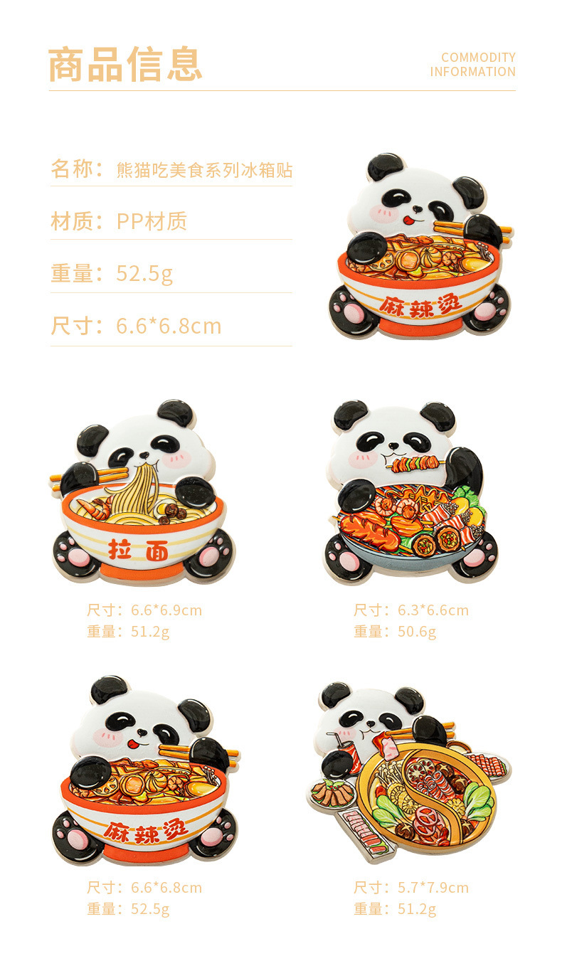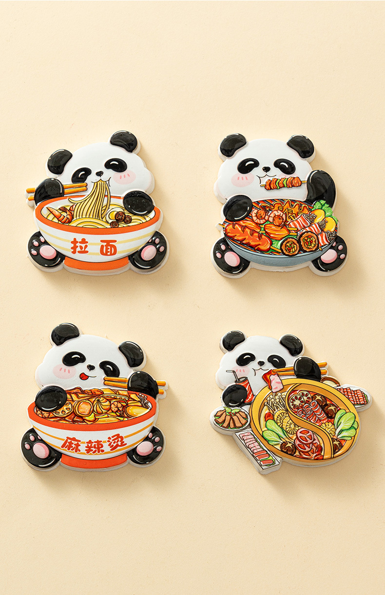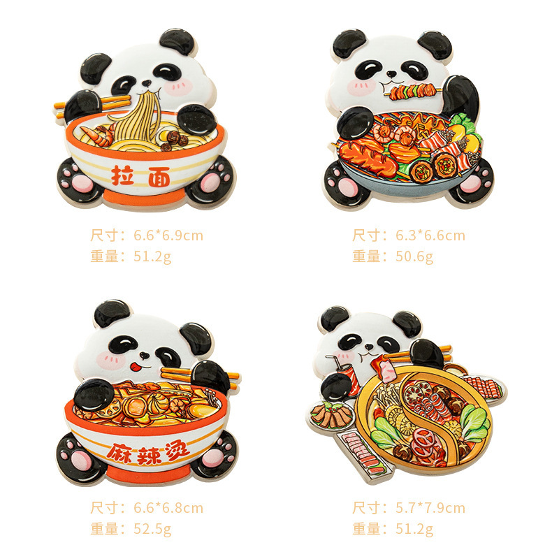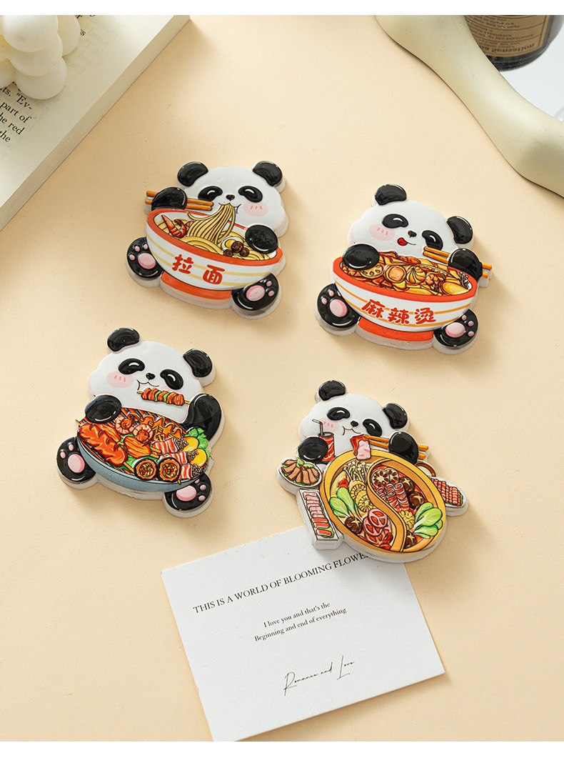 美食熊猫冰箱贴卡通可爱文创磁性贴成都创意纪念品磁吸贴家居装饰