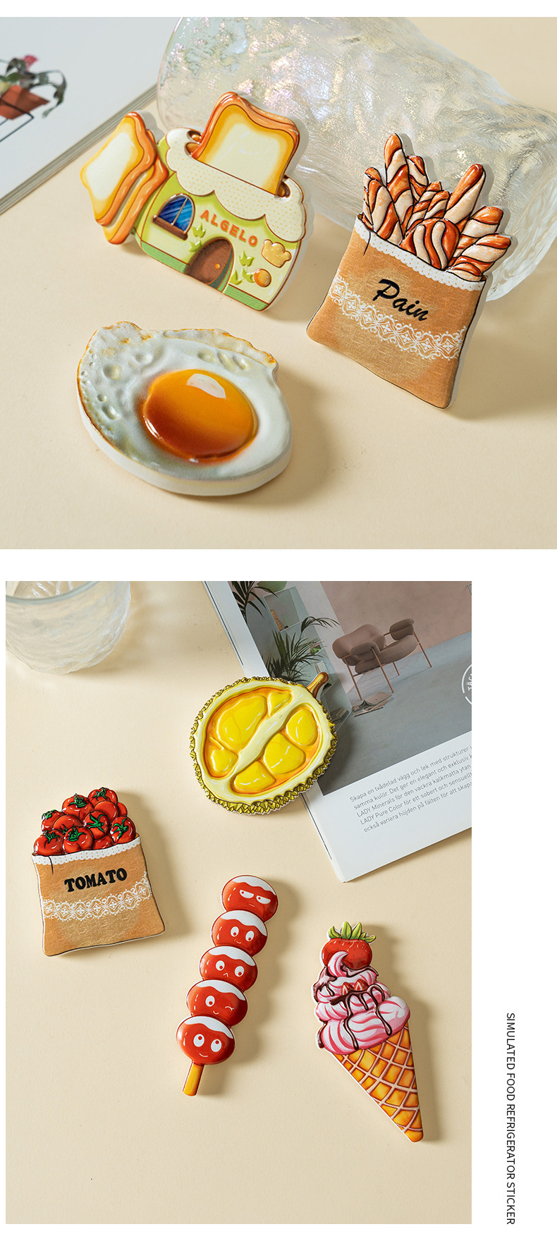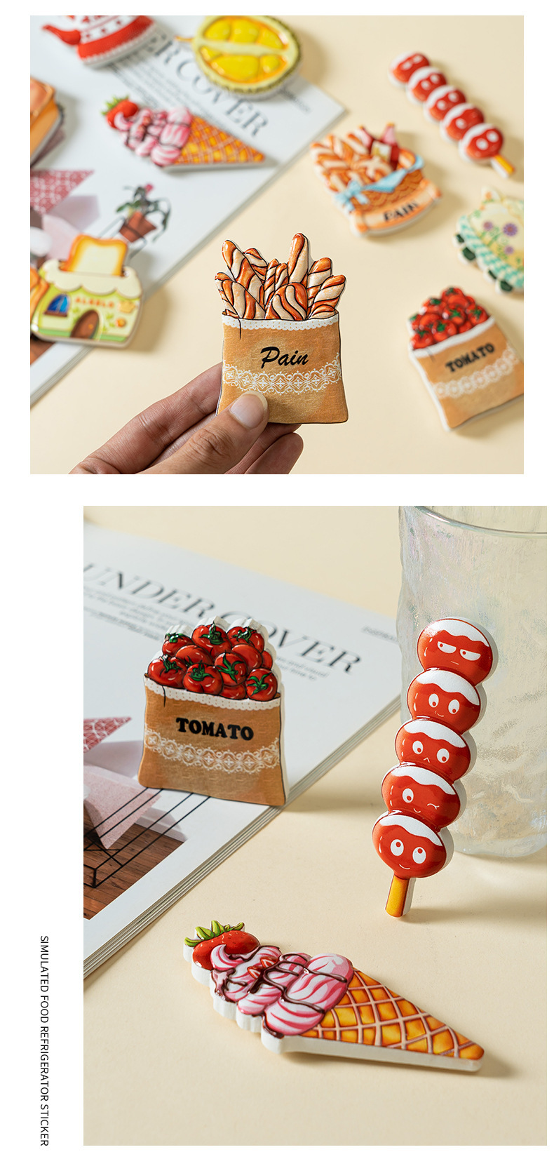 美食冰箱贴创意食玩磁力贴立体家居装饰品树脂食物冰箱磁性贴批发