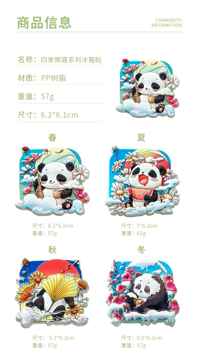 成都熊猫冰箱贴四川旅游大熊猫可爱磁力贴重庆景区文创装饰纪念品