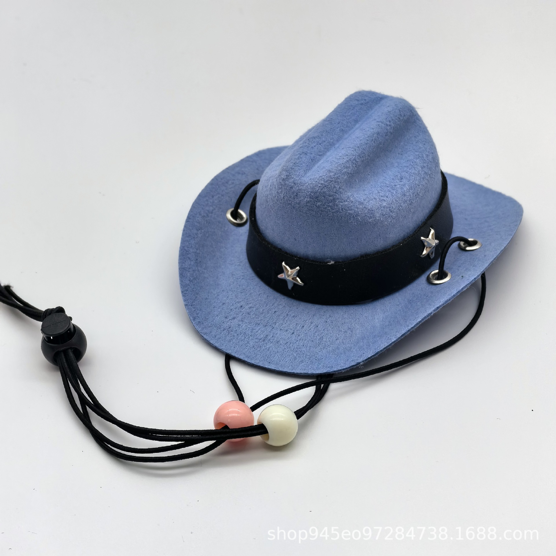 亚马逊新款猫咪帽牛仔宠物帽迷你帽小狗帽子西部牛仔帽五角星装饰