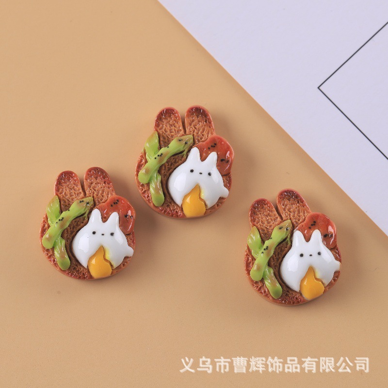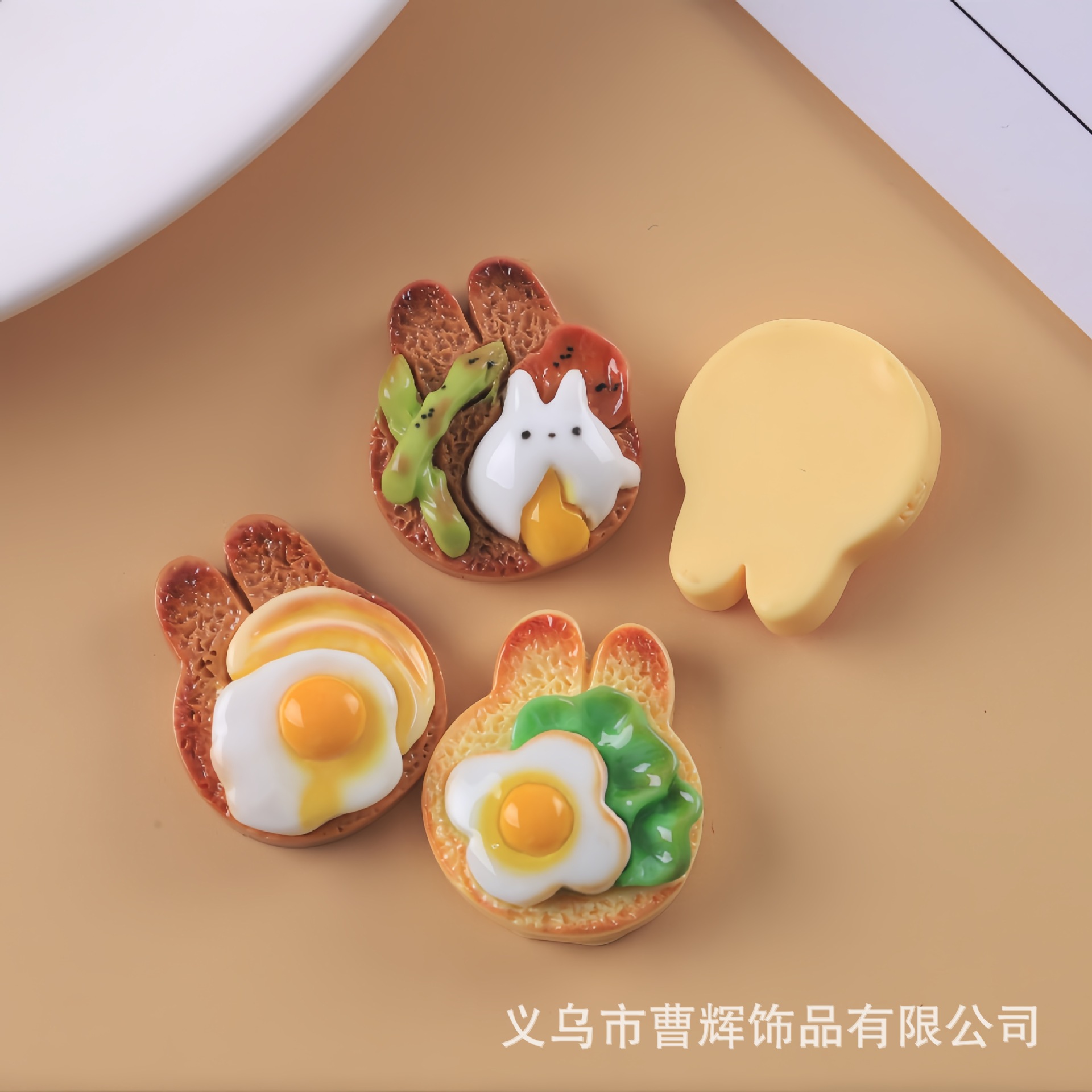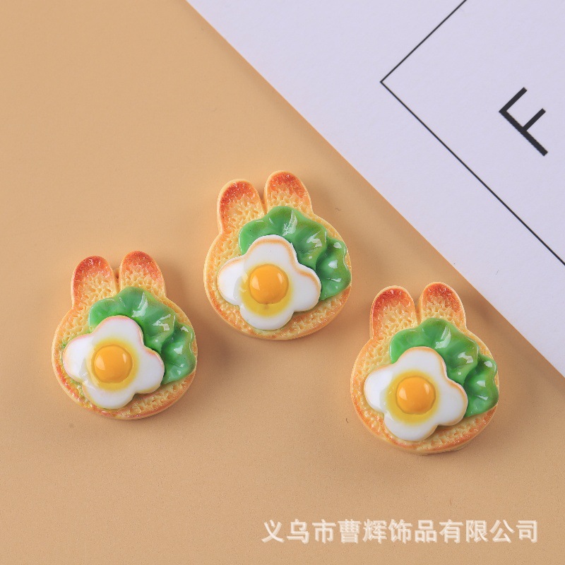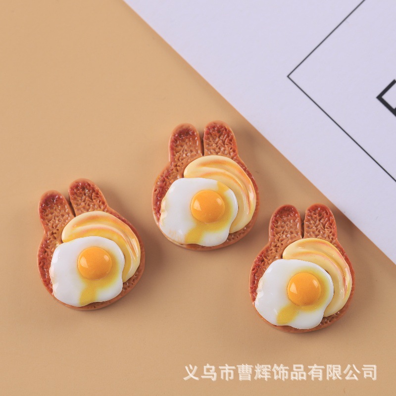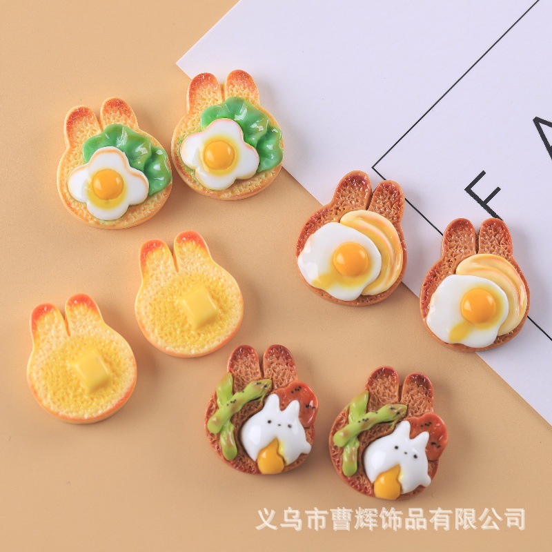 diy仿真食玩小兔芝士煎蛋吐司 奶油胶配饰冰箱贴手工材料树脂配件
