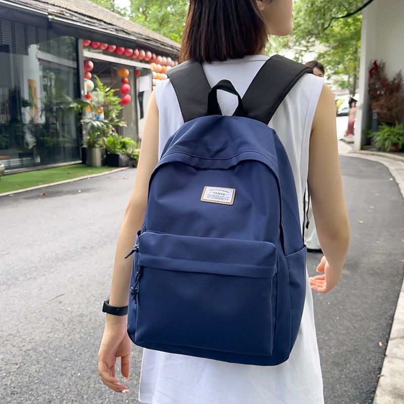 ins新款初中生书包女纯色简约校园学生双肩包批发