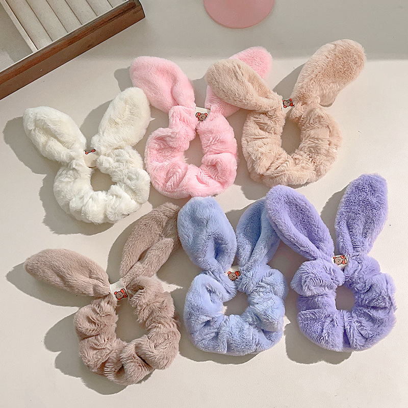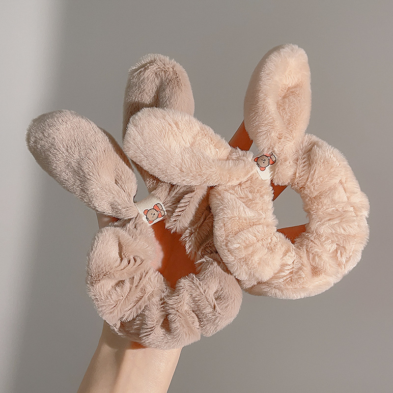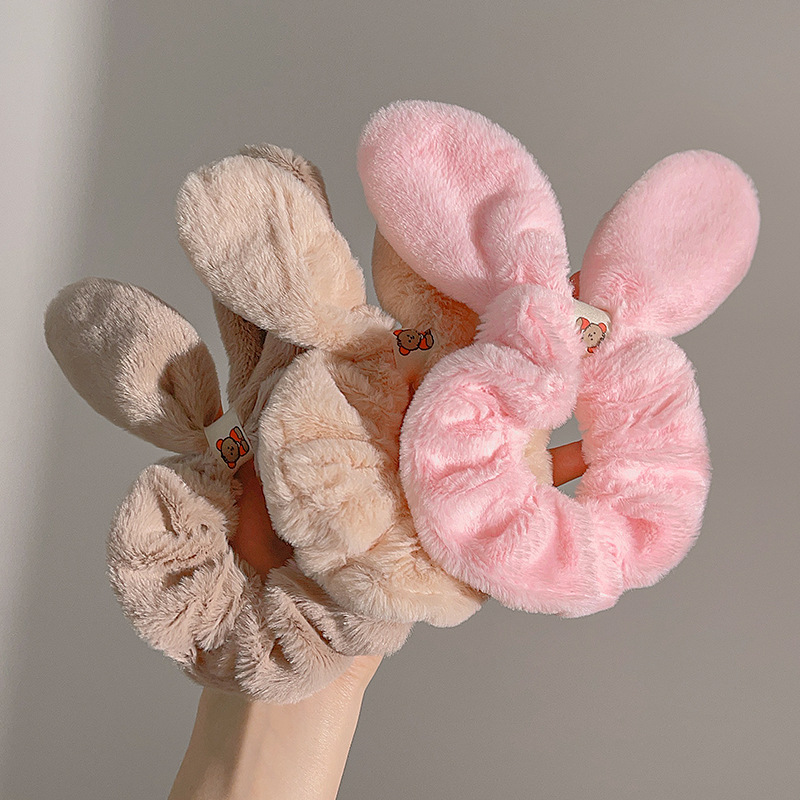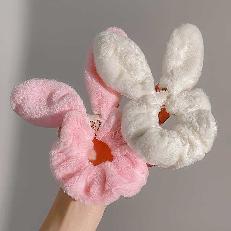 秋冬兔耳毛绒发圈甜美丸子头盘发头绳扎头发发饰ins可爱大肠发圈