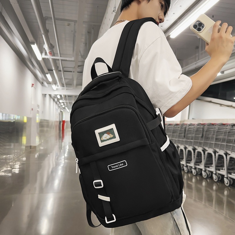 初中生双肩包新款校园大学生背包撞色拼接潮流书包