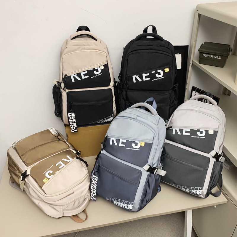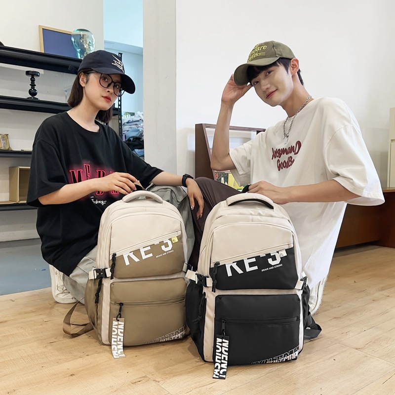 ins大学生书包高中生字母潮牌双肩包初中生拼接撞色书包
