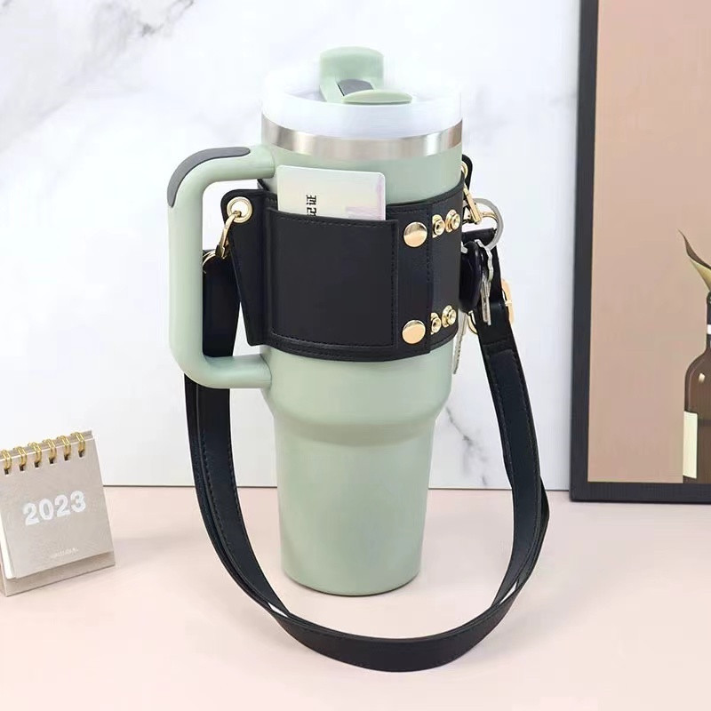 厂家批发皮革冰霸杯杯套40oz冰霸马克杯套可调节肩带皮质杯套