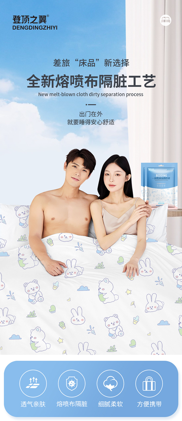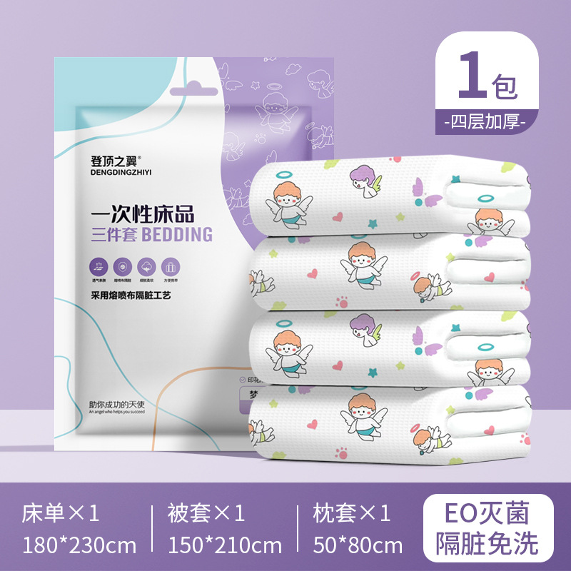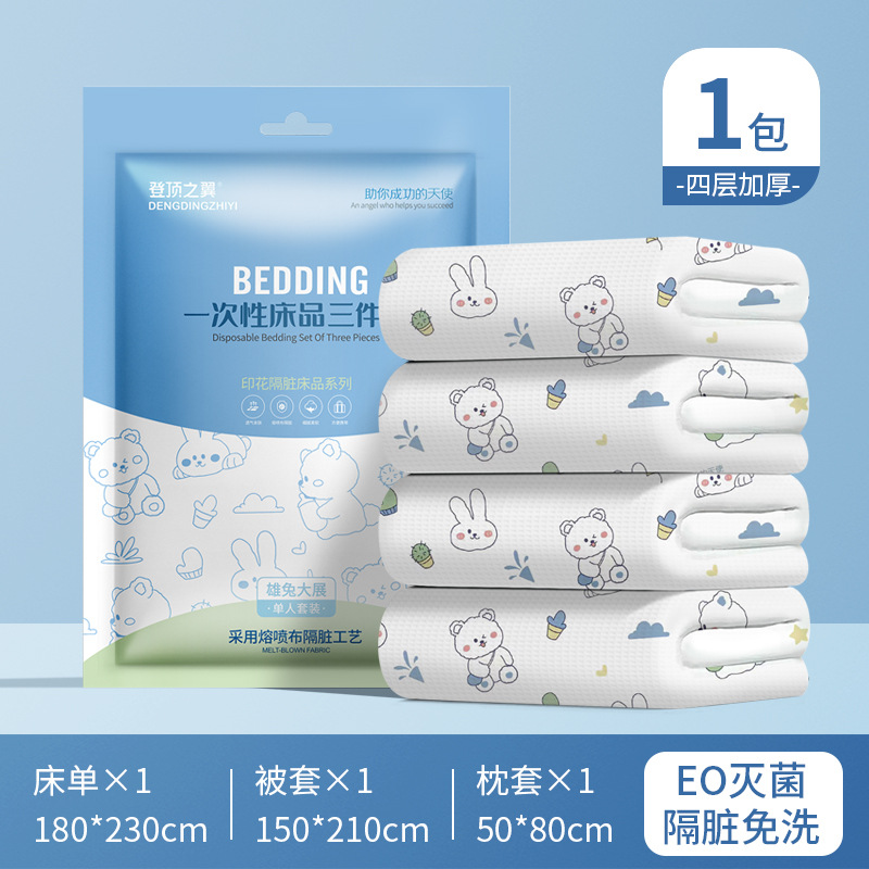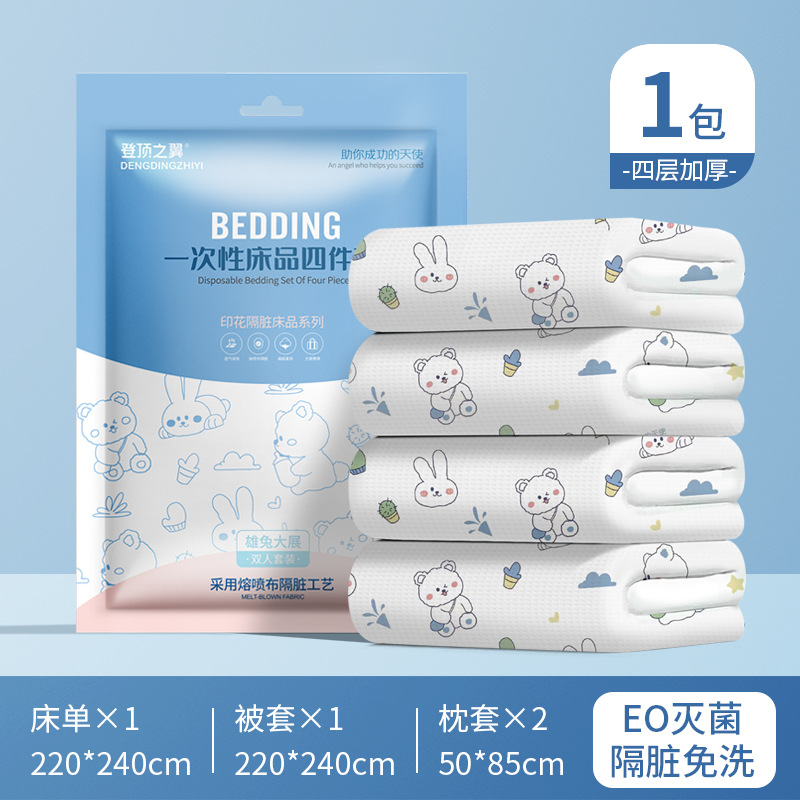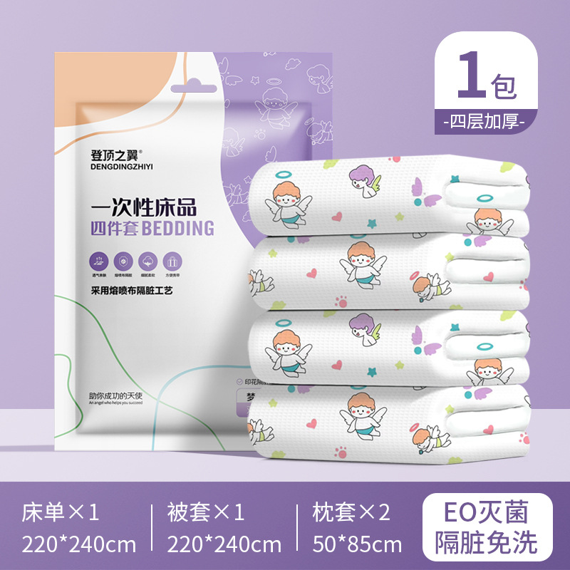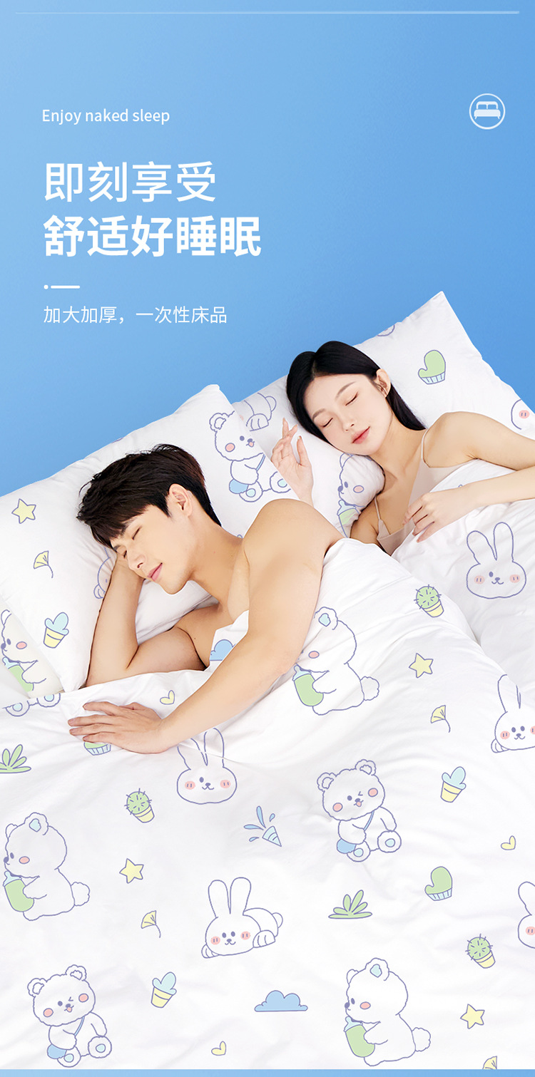 严选一次性床品四件套床单加厚棉柔被套枕套一次性旅行酒店用品