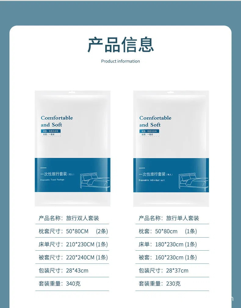 旅游一次性床单被套枕套三件套四件套酒店民宿无纺布旅游用品套装