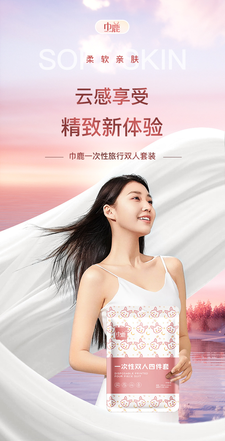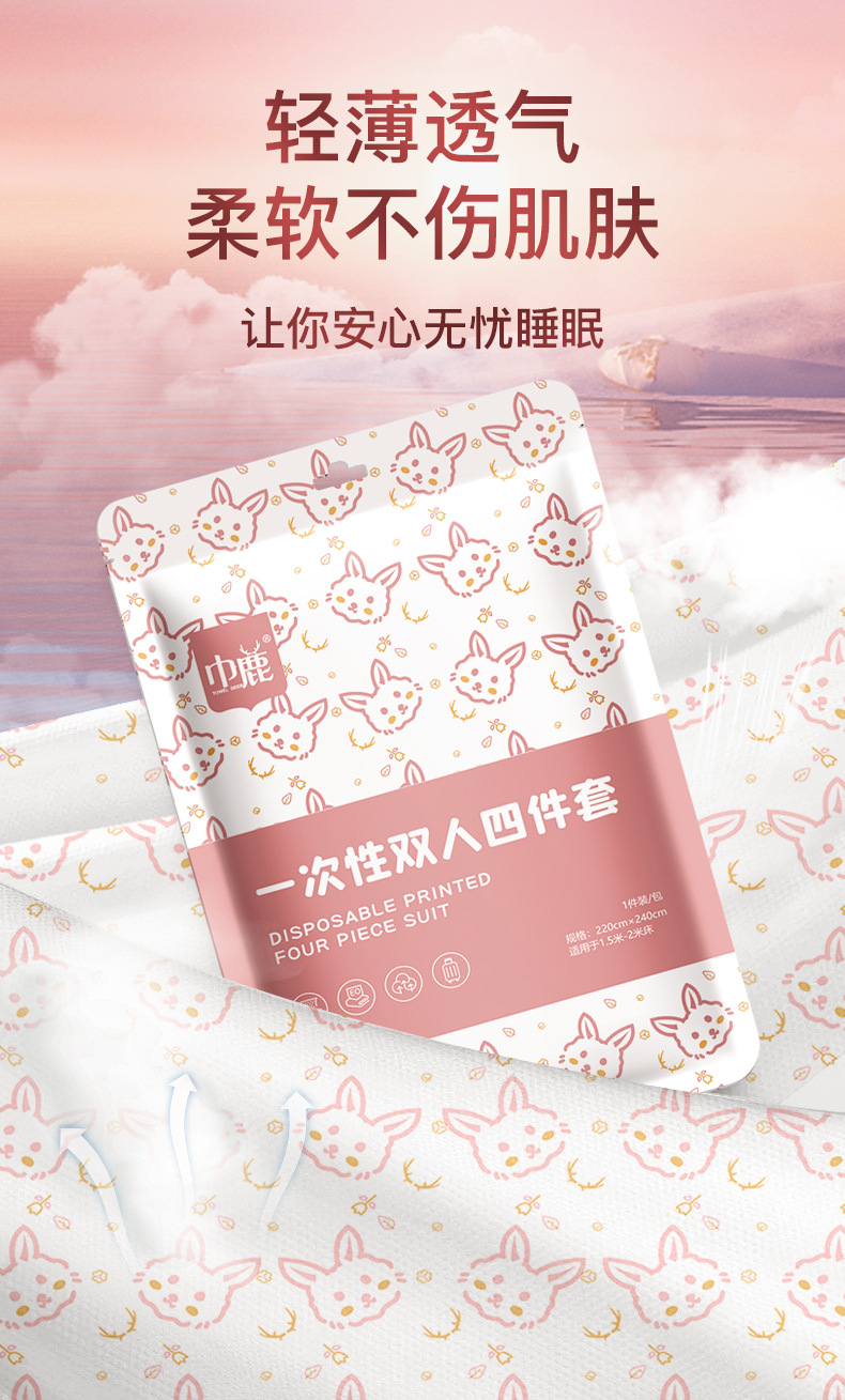 棉朵酒店一次性床单套装四件套旅行双人床上用品隔脏被罩枕套