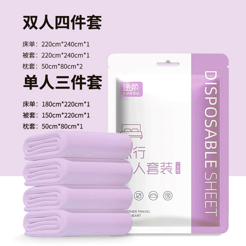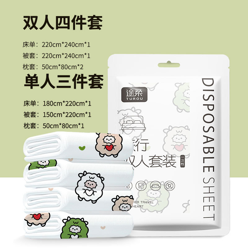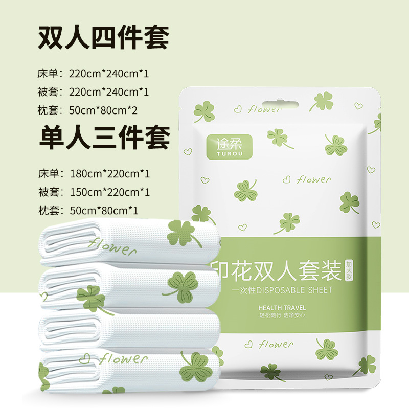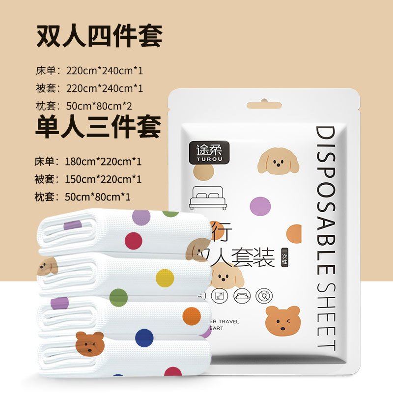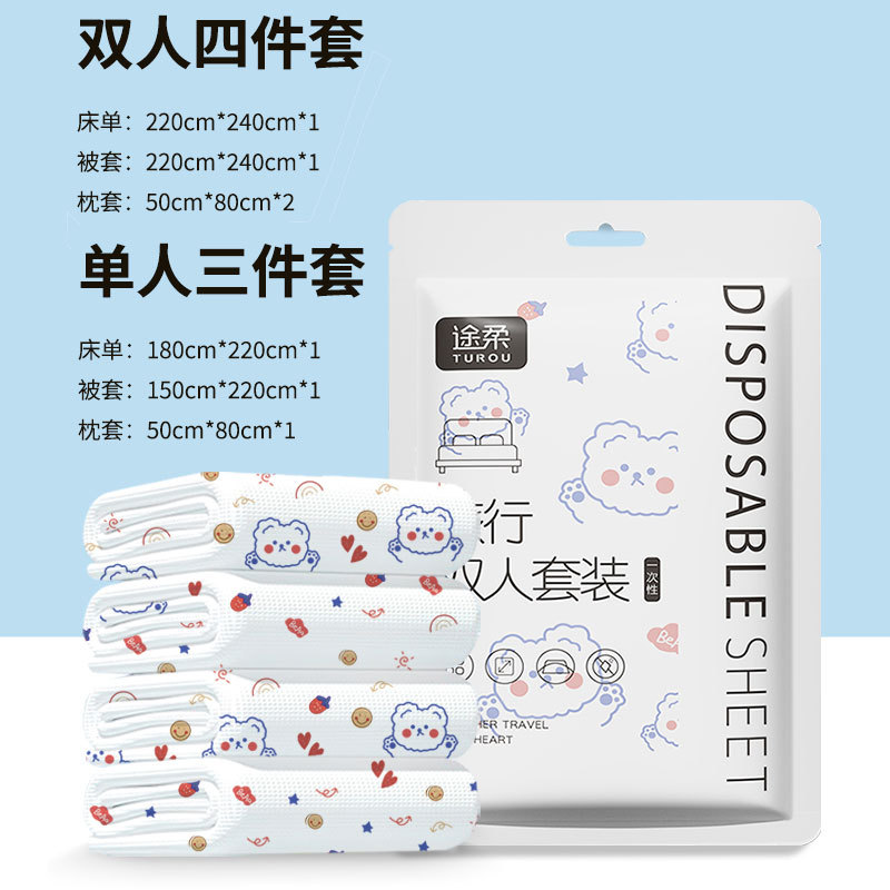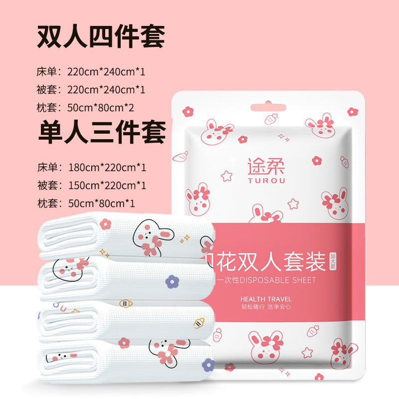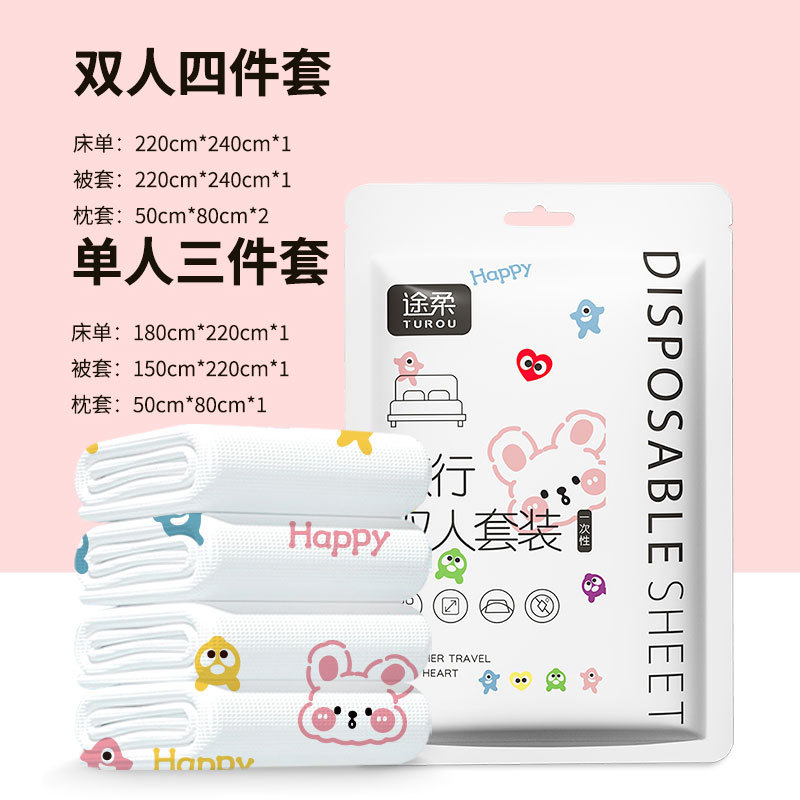 酒店旅行套装一次性床单四件套恐龙印花纯色被罩床上用品出差枕套