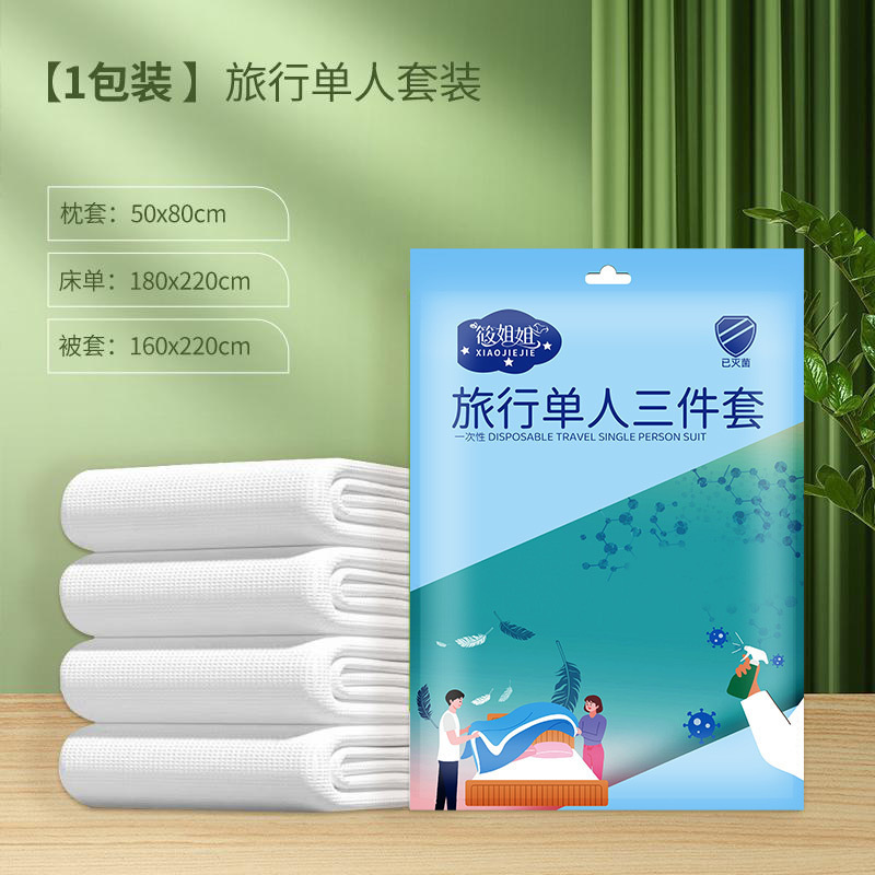 | disposal bed sheet 3/4 piece set(一次性床单3/4件套) | USD $1.07 | 4974 set available |