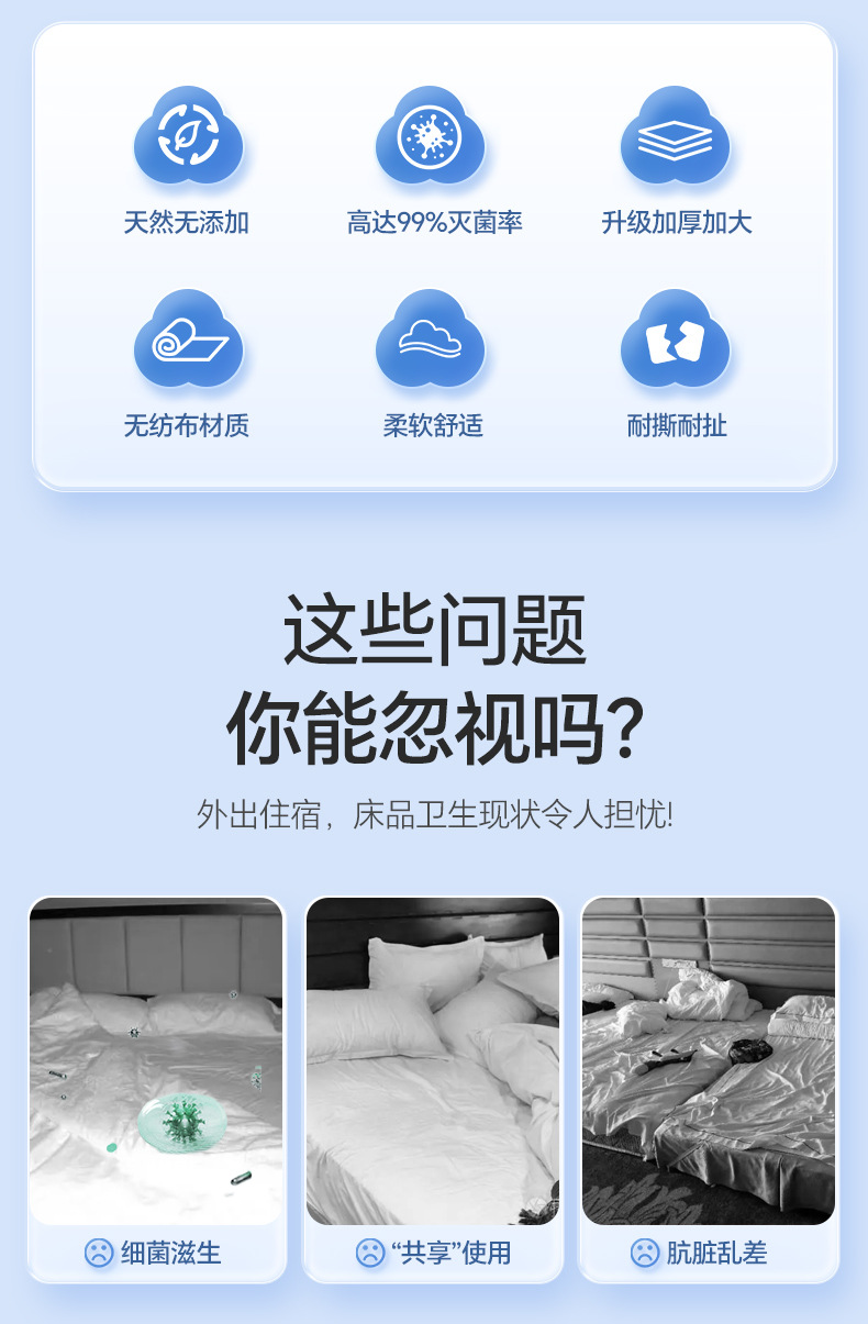 旅行一次性床单被罩枕套被套四件套旅游酒店双人床上用品隔脏加厚