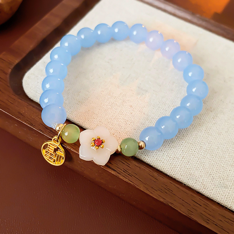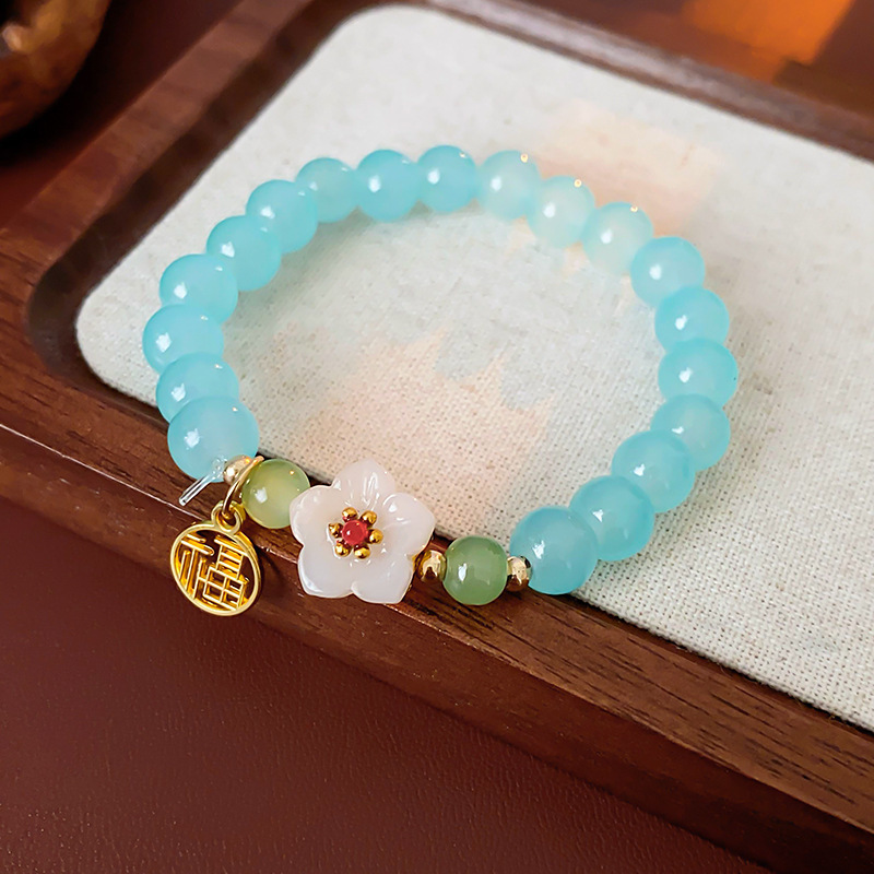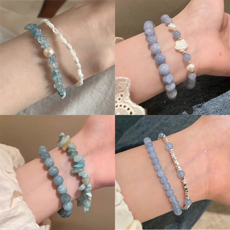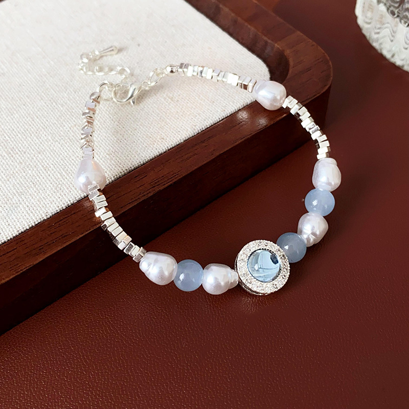 饰品小众设计感手串情侣闺蜜手饰海蓝宝山茶花天然珍珠手链女批发
