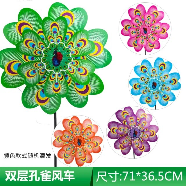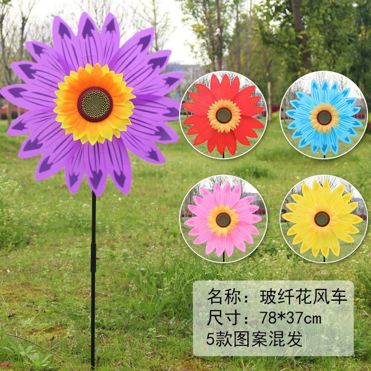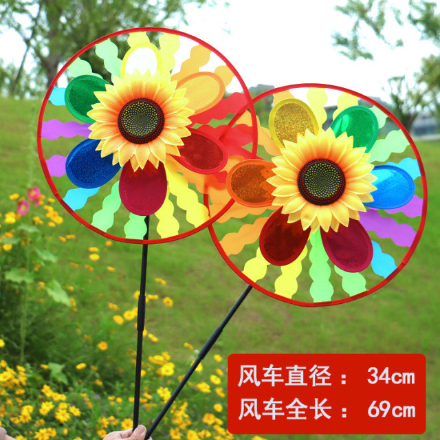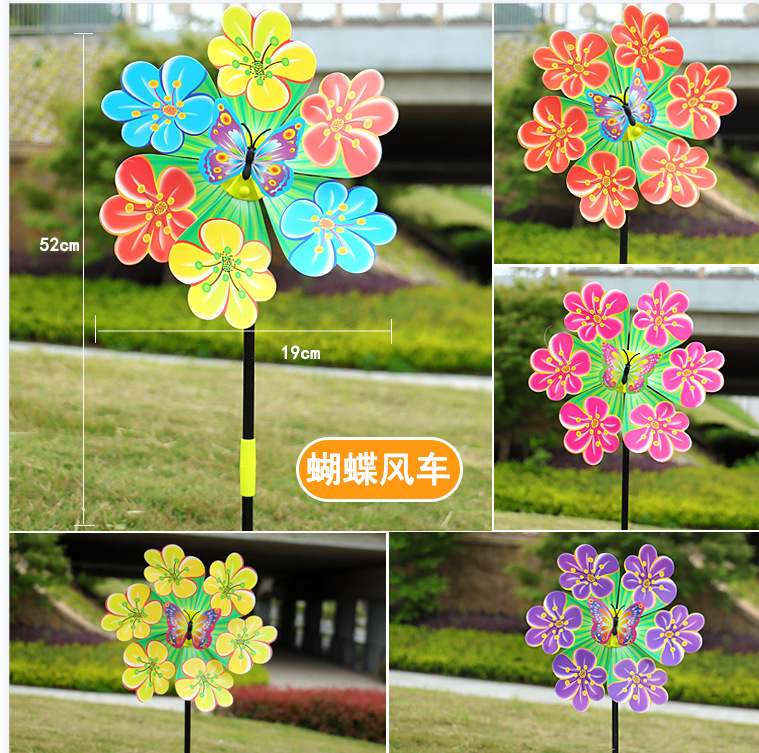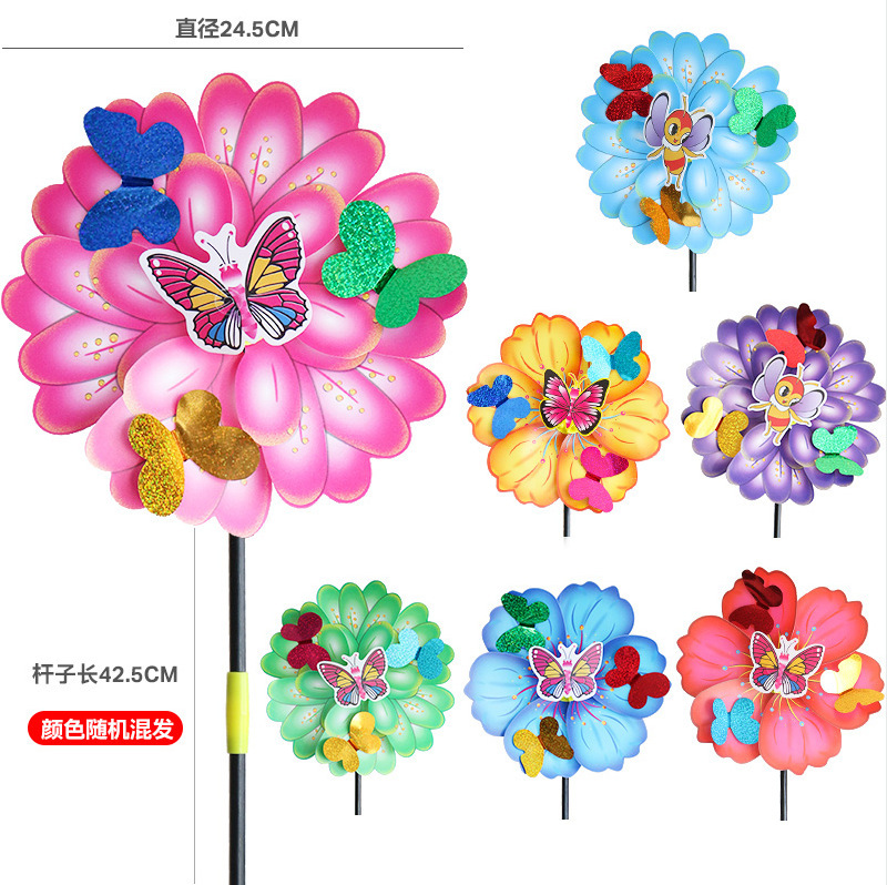 儿童节亮片风车卡通六轮风车七彩花六叶风车户外传统玩具摆摊