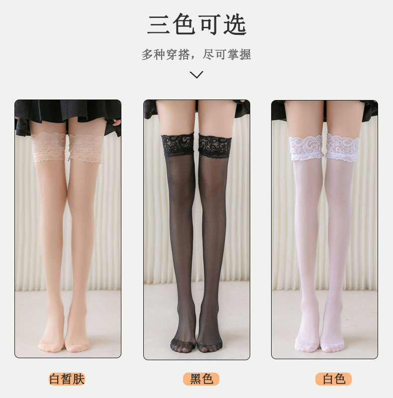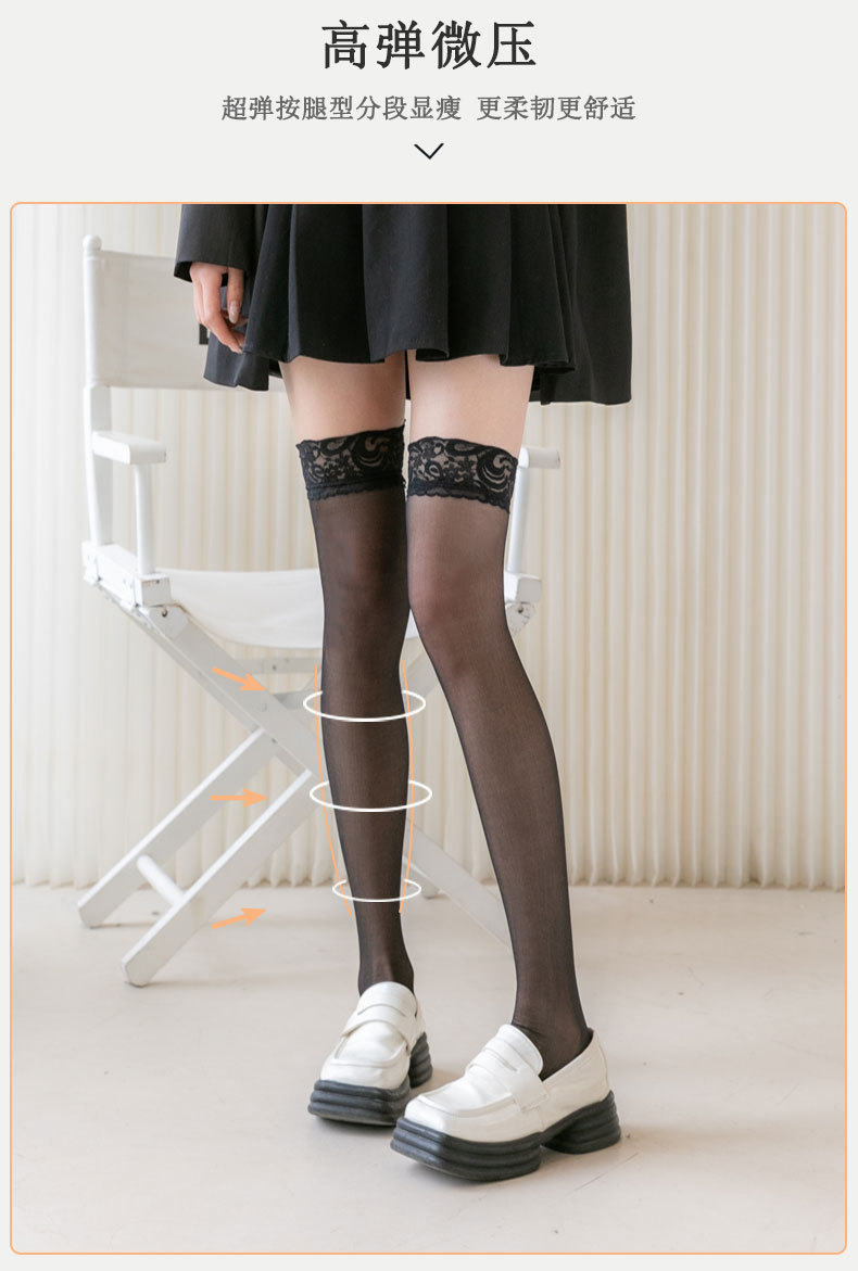 丝袜过膝袜薄款性感高筒袜长筒袜蕾丝花边女过膝黑丝袜夏季