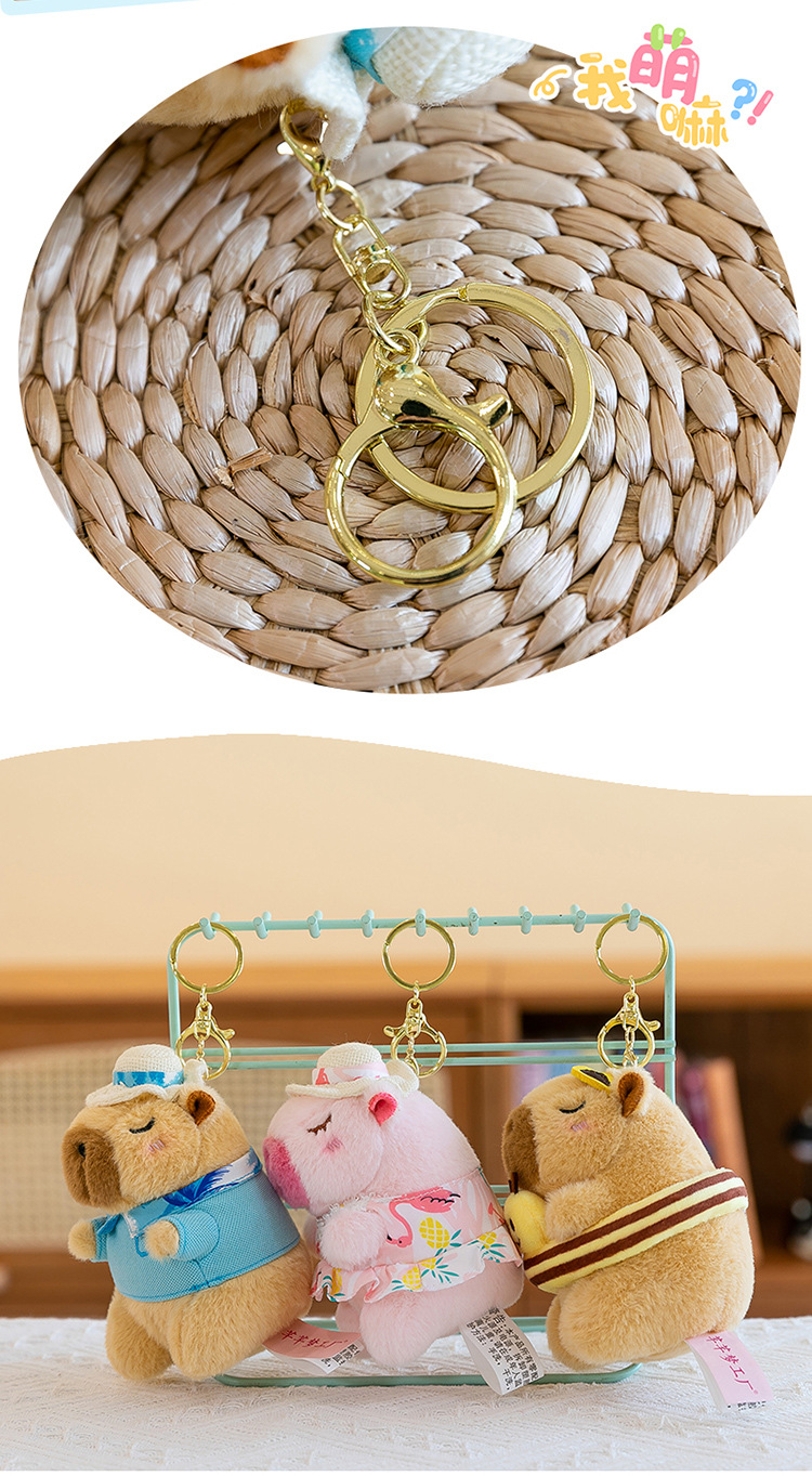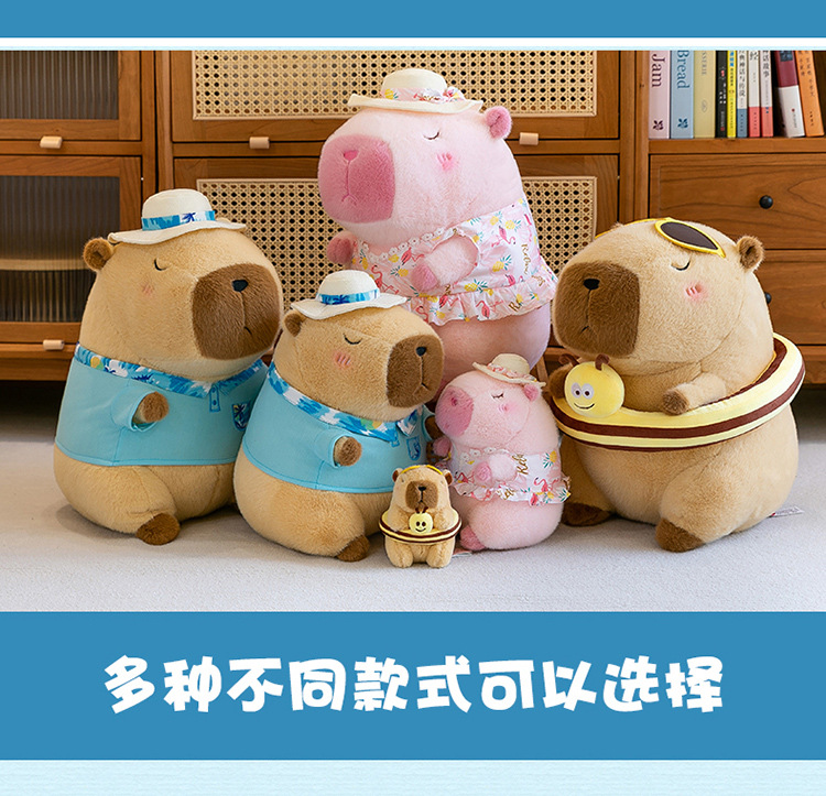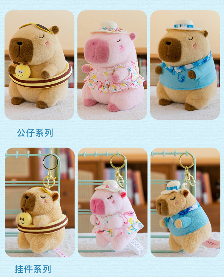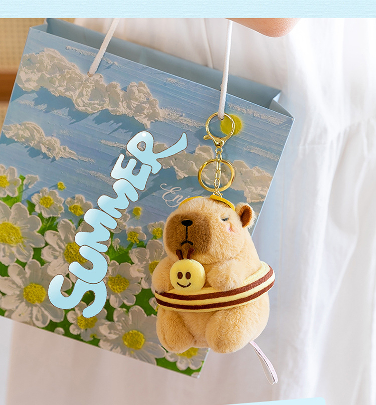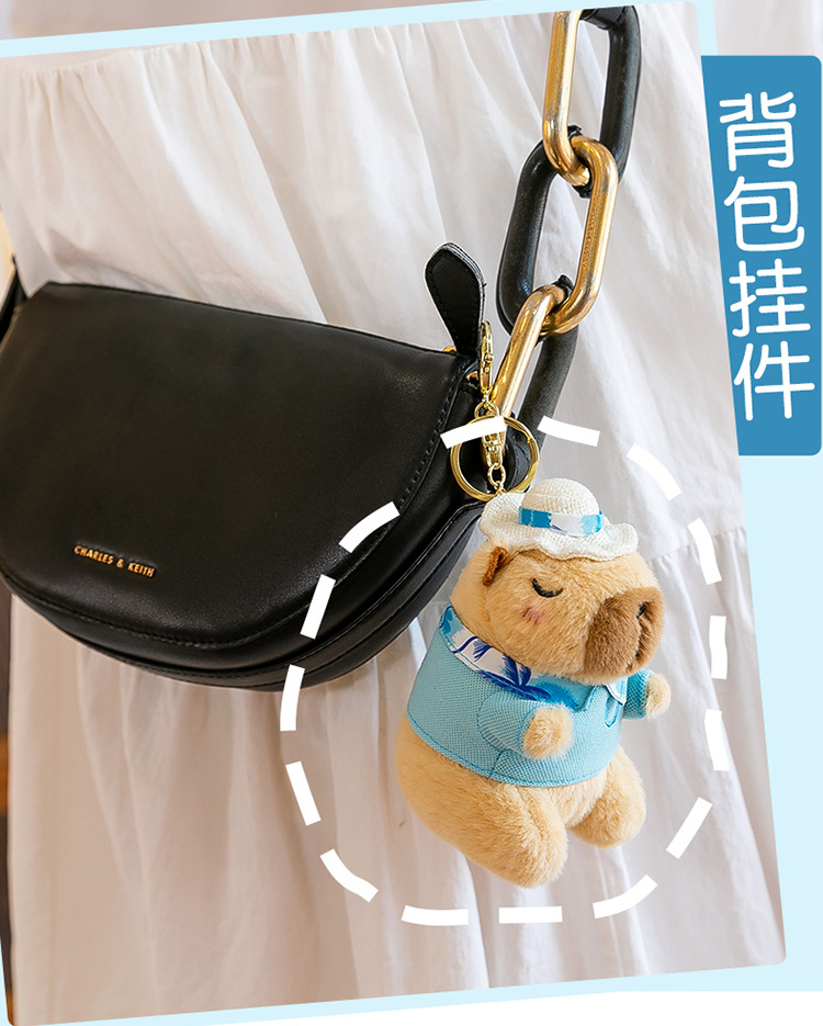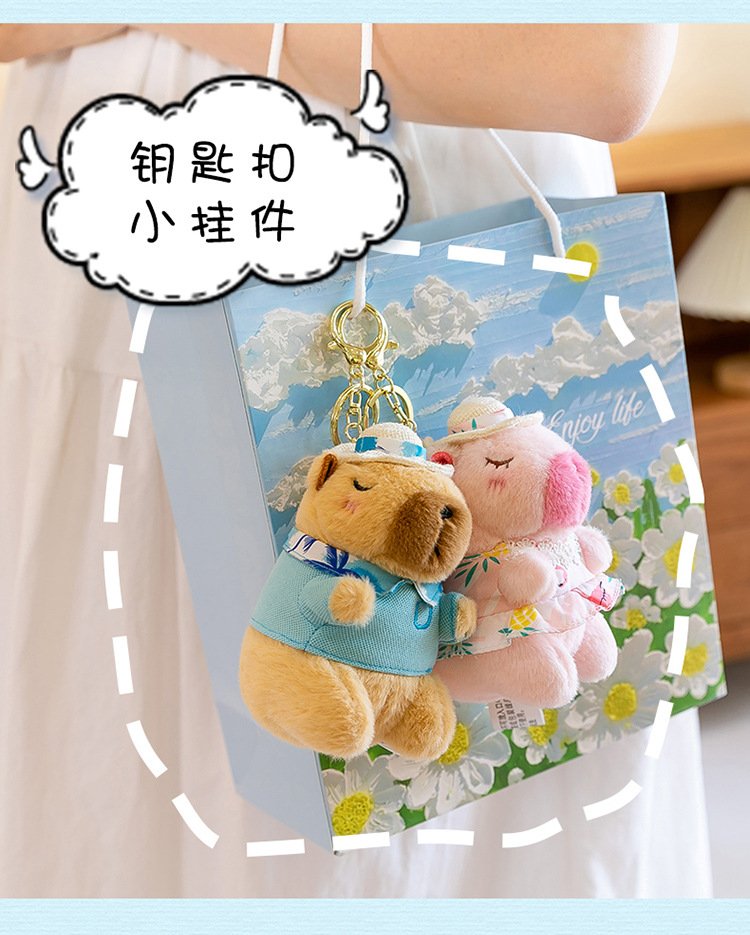 卡通夏日水豚毛绒玩具粉裙卡皮巴拉背包挂件蓝褂钥匙扣蜜蜂圈批发