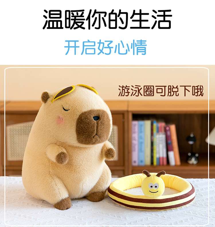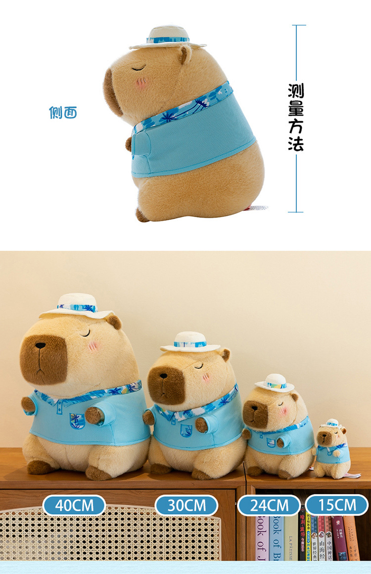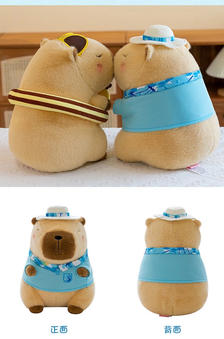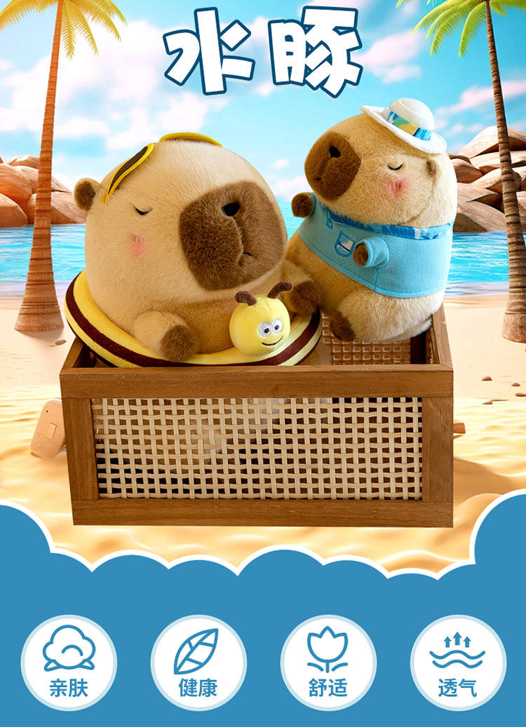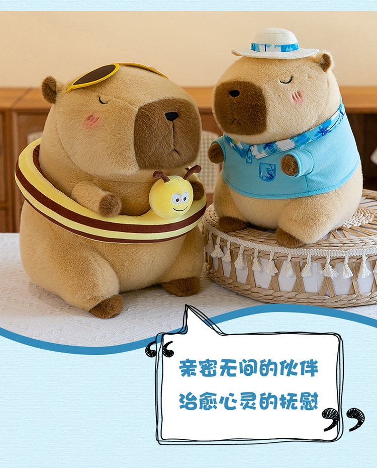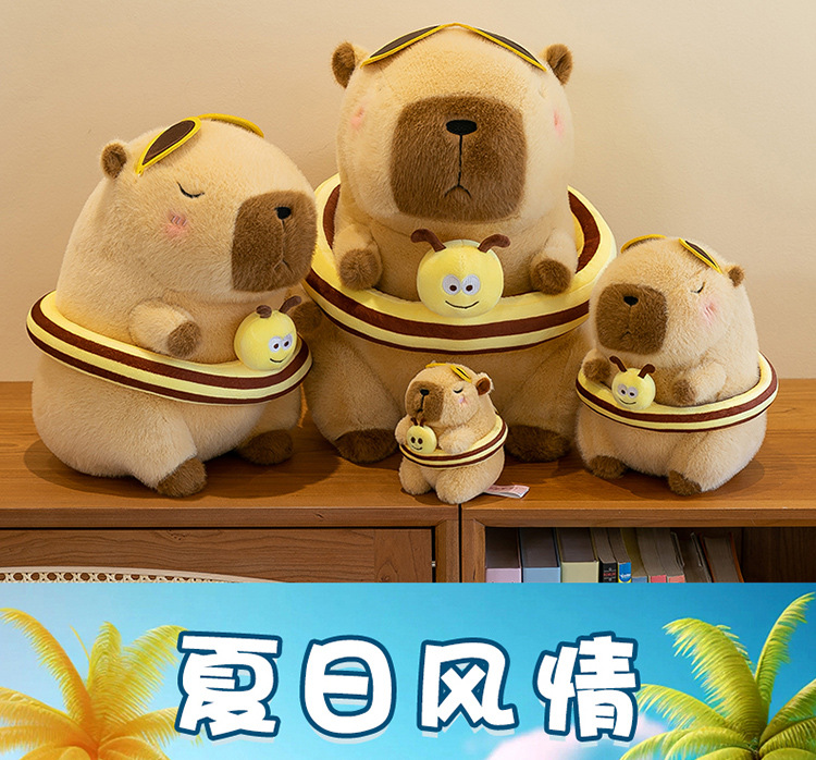 卡通夏日水豚毛绒玩具粉裙卡皮巴拉背包挂件蓝褂钥匙扣蜜蜂圈批发