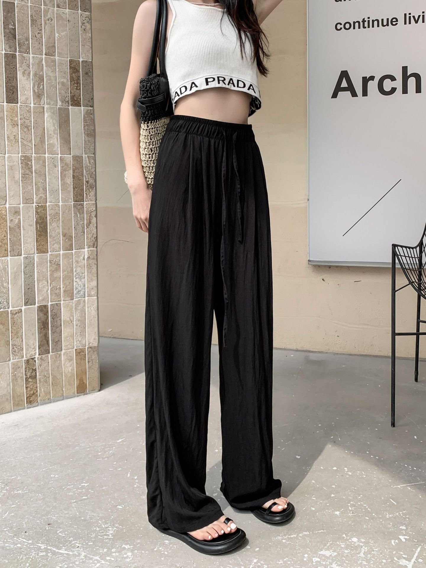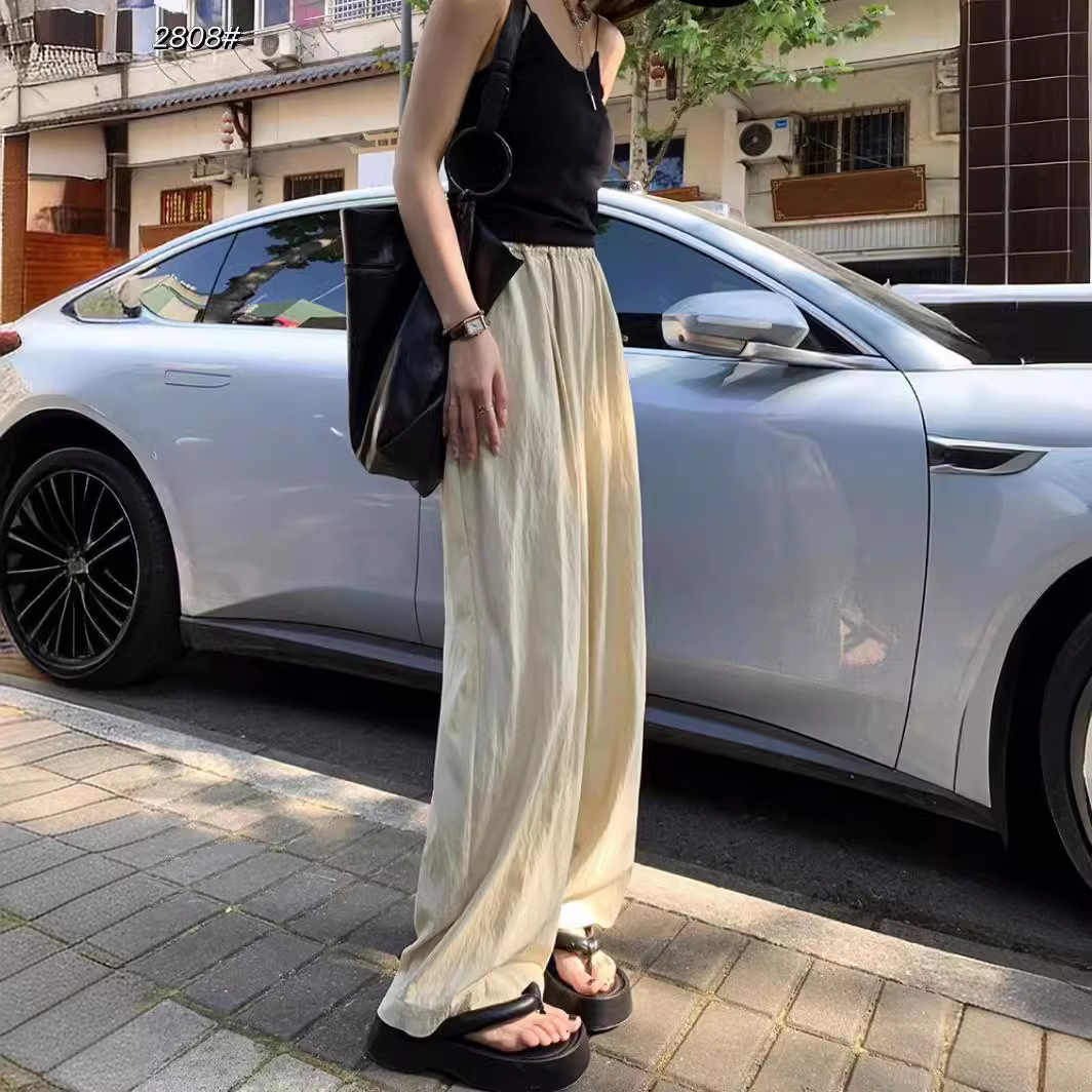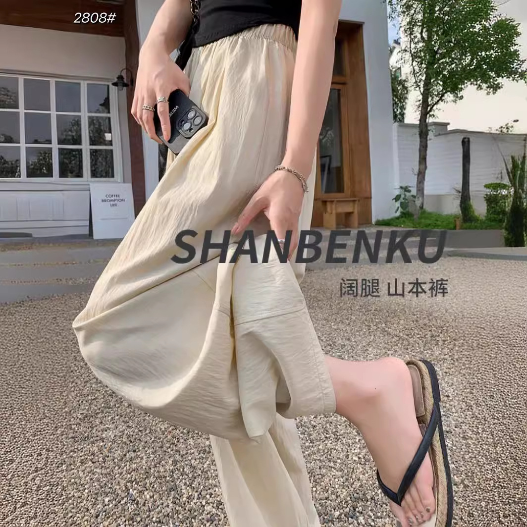 冰丝阔腿裤女夏季薄款高腰垂感宽松日系慵懒休闲长裤肌理感山本裤