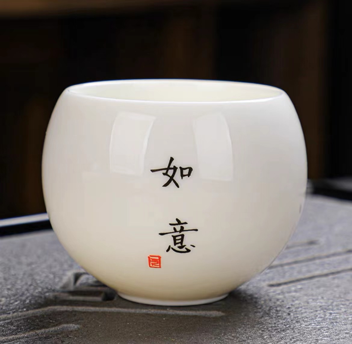 德化羊脂玉瓷品茗杯陶瓷茶杯茶具日式龙蛋杯功夫单杯主人杯喝茶碗