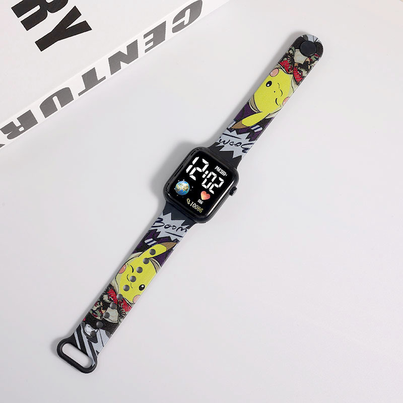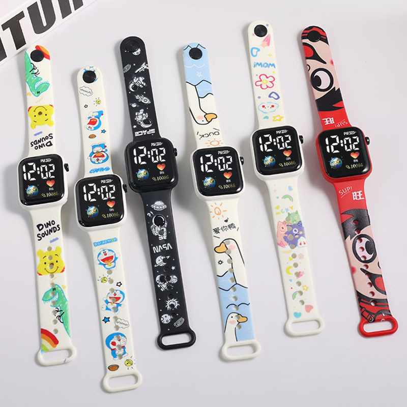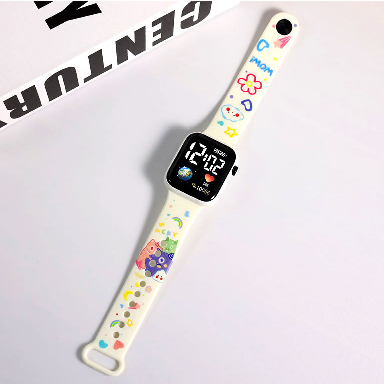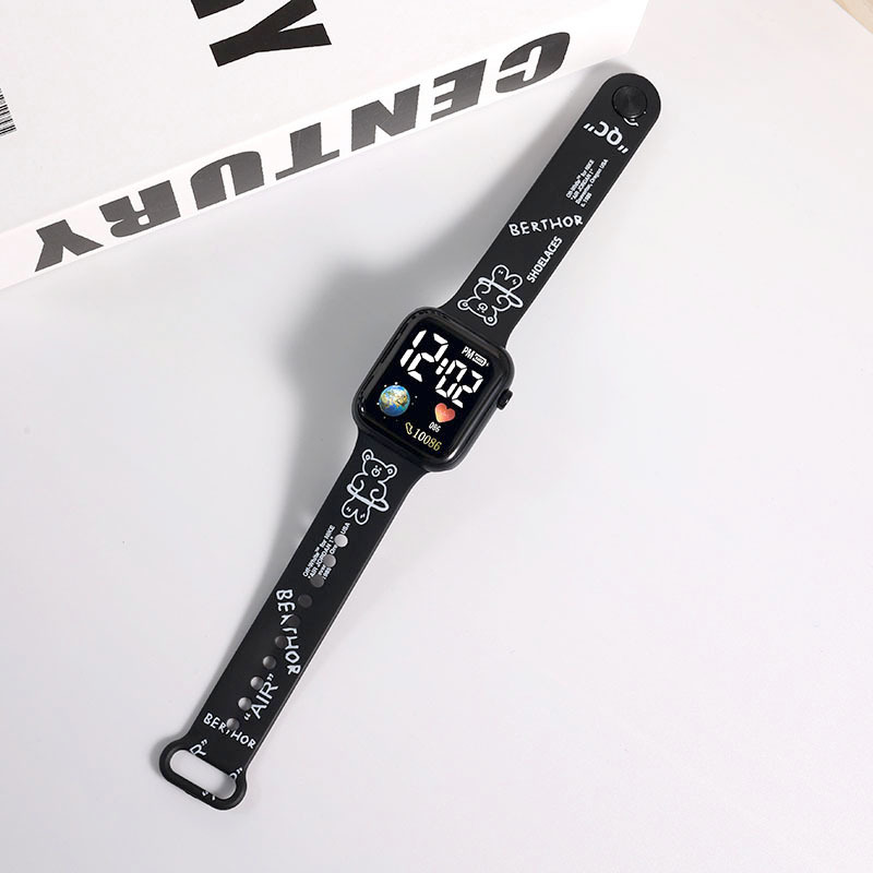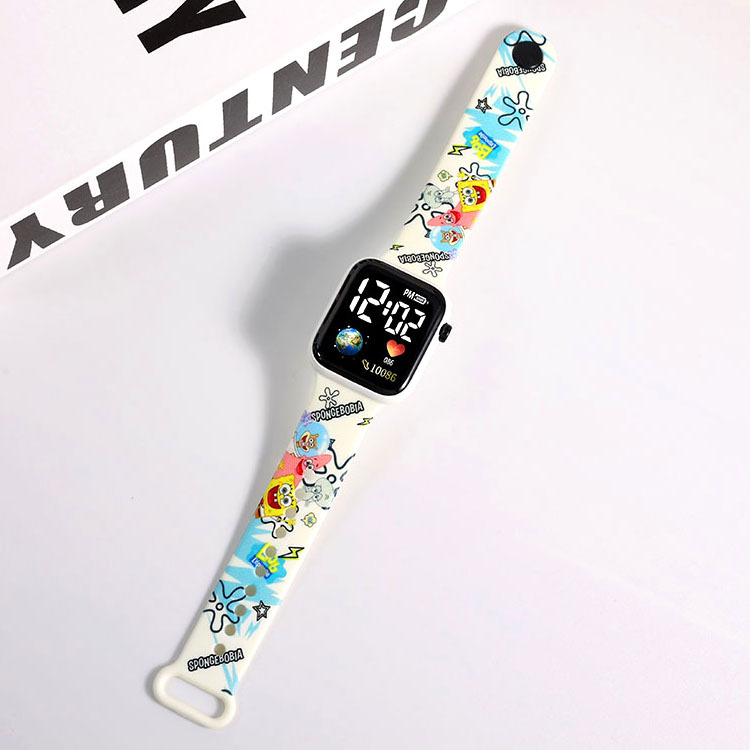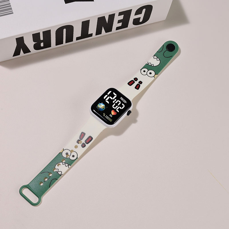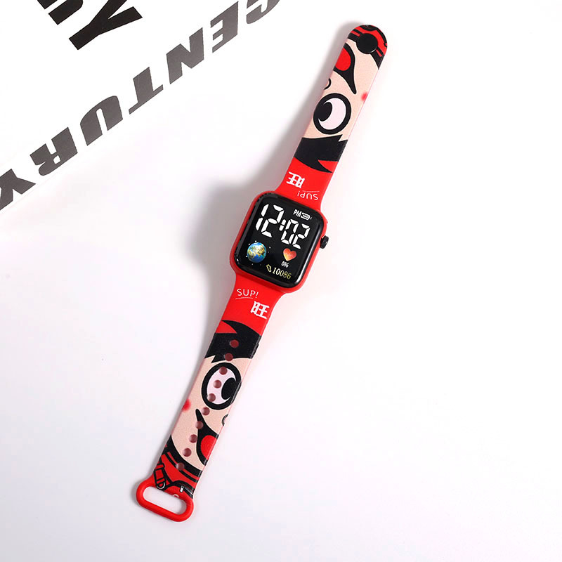 新款【地球】卡通印花按键LED手表时尚个性方形小学生电子手表